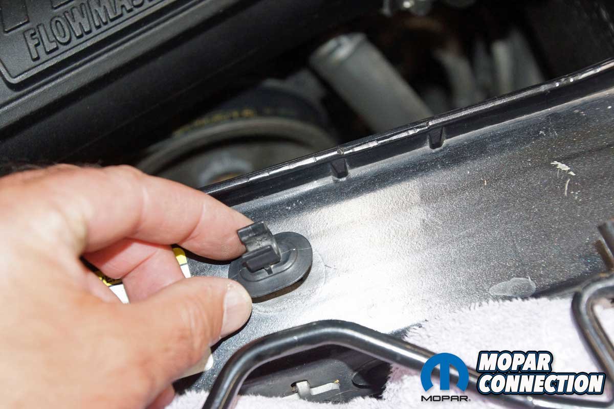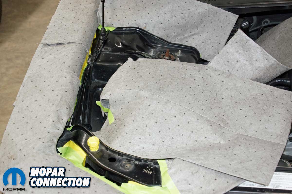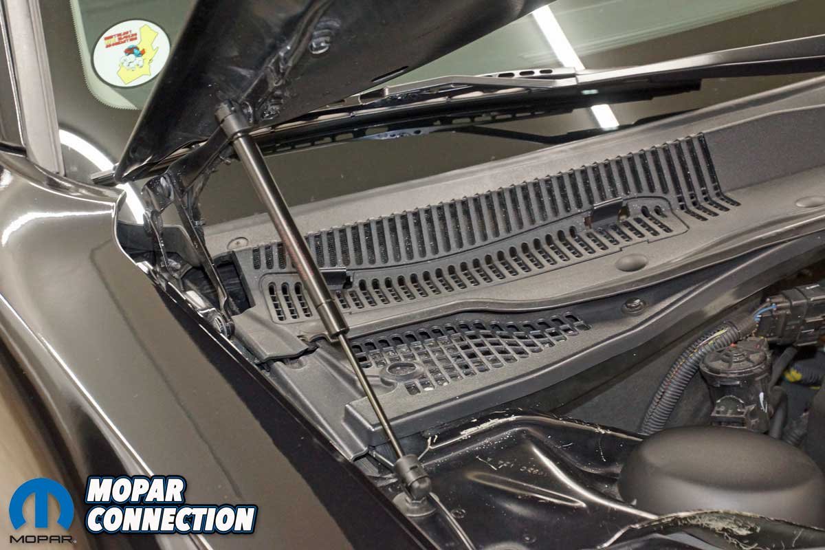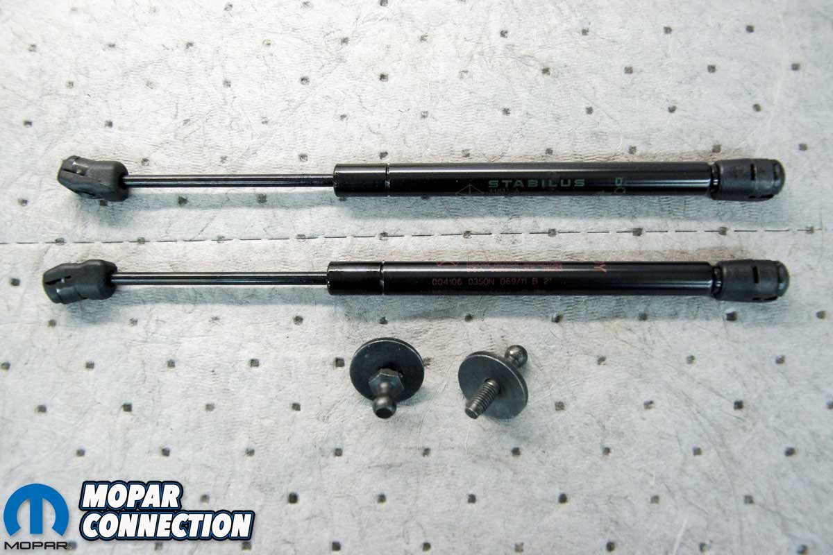 Our Police Pursuit Charger came with a prop rod, and after several years of working around it, we decided to replace it with a factory gas strut conversion kit (part no. 82212094). The conversion kit supports over 120 Chrysler products that did not come with struts.
