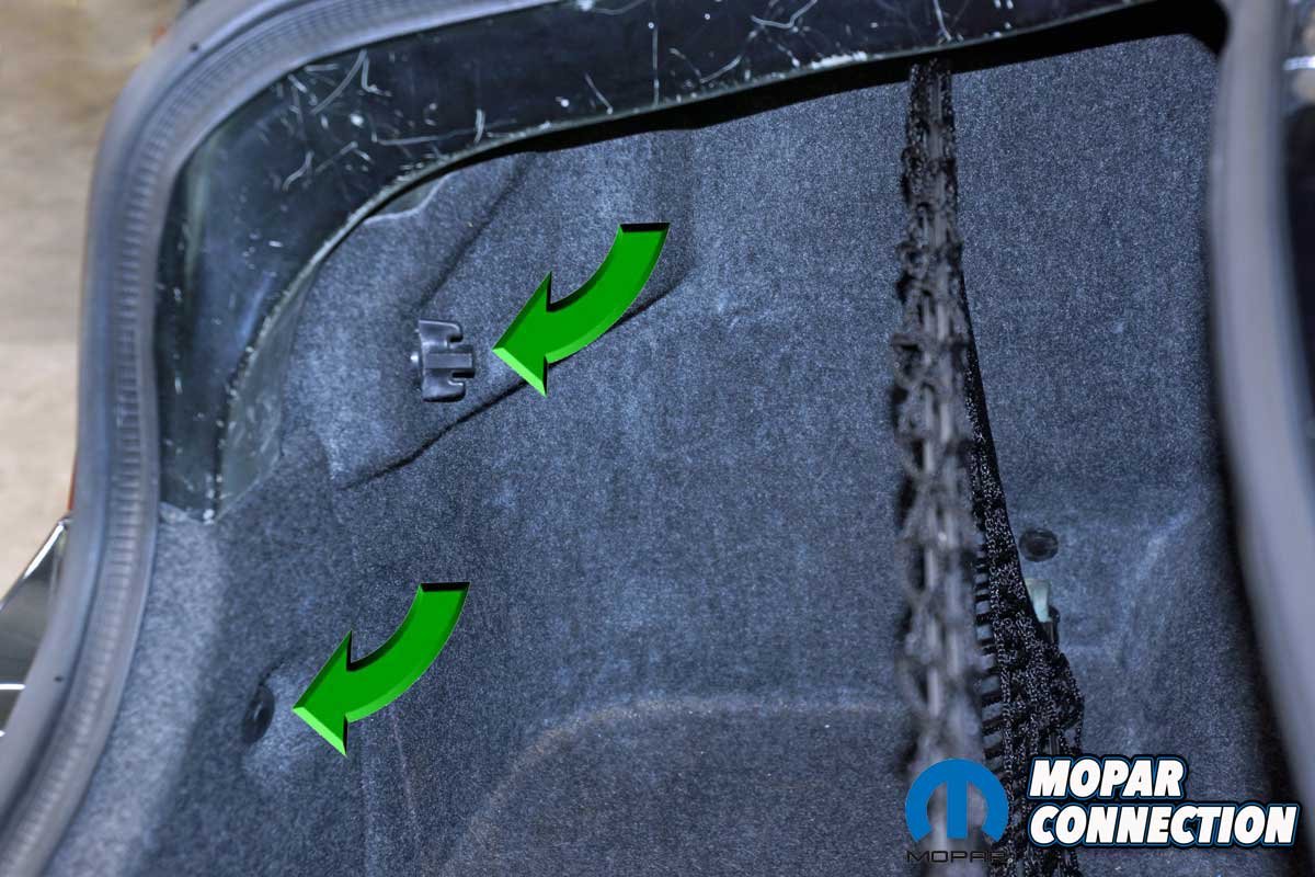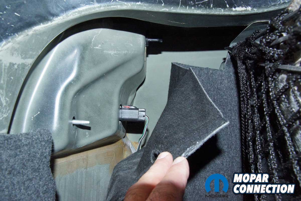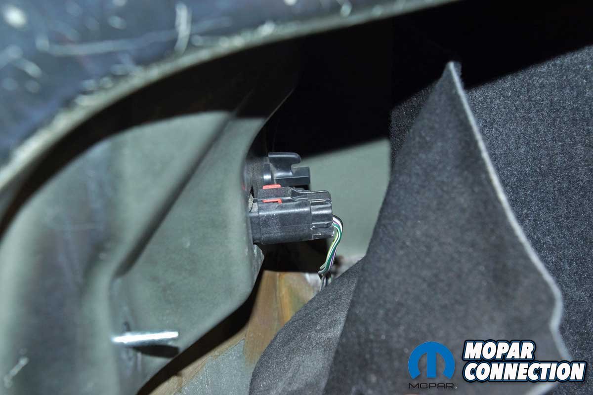 The installation of each taillight was straightforward. Starting on the driver side, we removed a plastic wingnut securing the taillight to the chassis and trunk liner. Next, we pulled back the liner to expose two additional plastic wingnuts and the taillight’s electrical connector.
