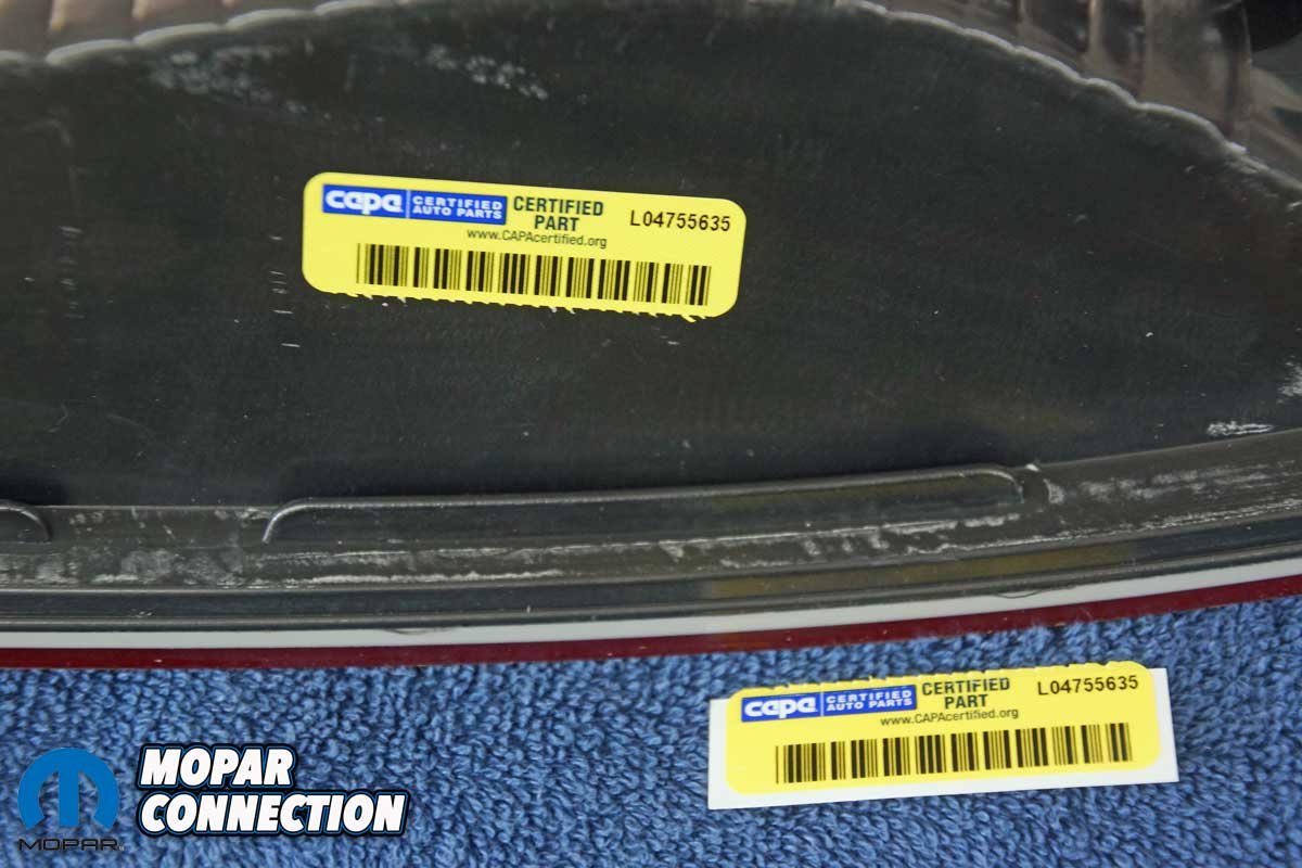 Above Left: The Certified Automotive Parts Association (CAPA) Certified American Muscle taillight housings are identical to the factory units. Above Right: Both taillight housings passed the rigorous CAPA evaluations, and each housing had a blue and yellow CAPA sticker affixed to it.