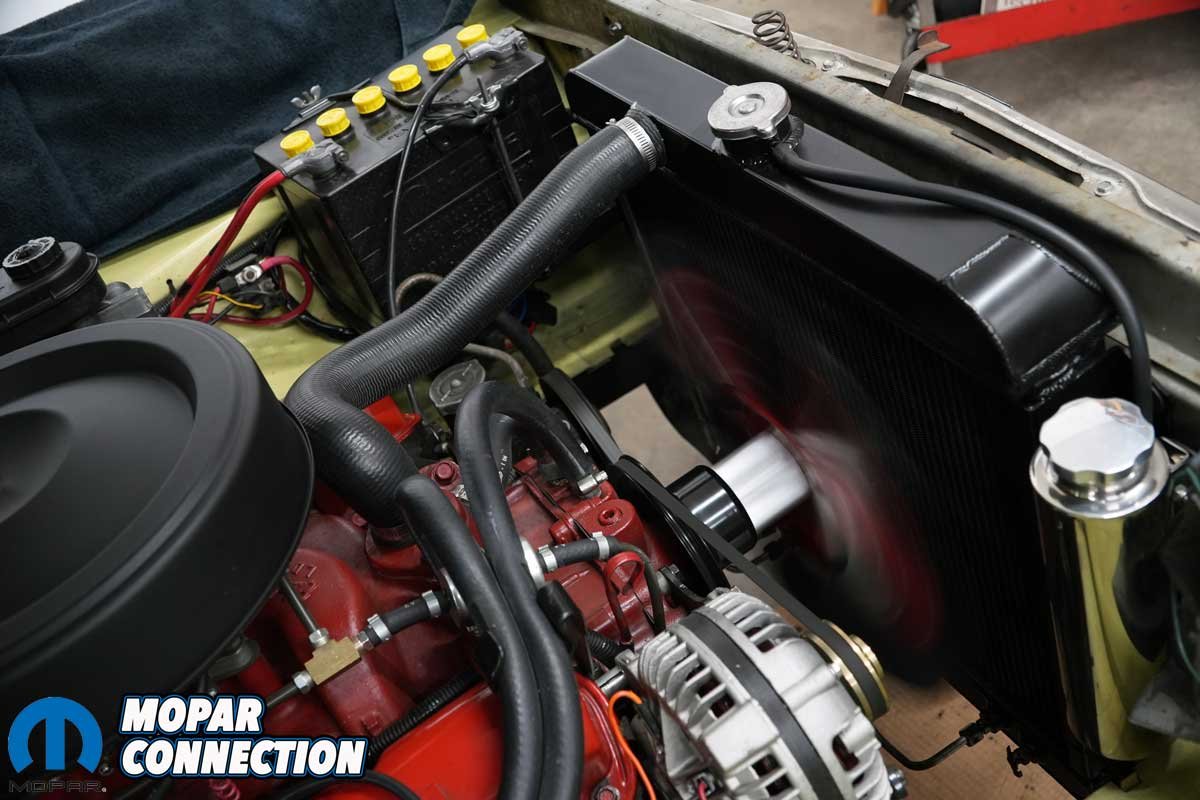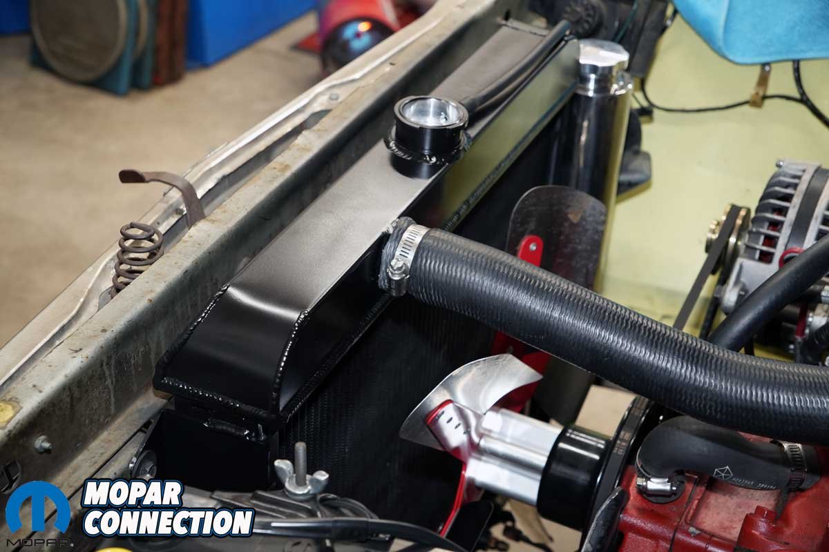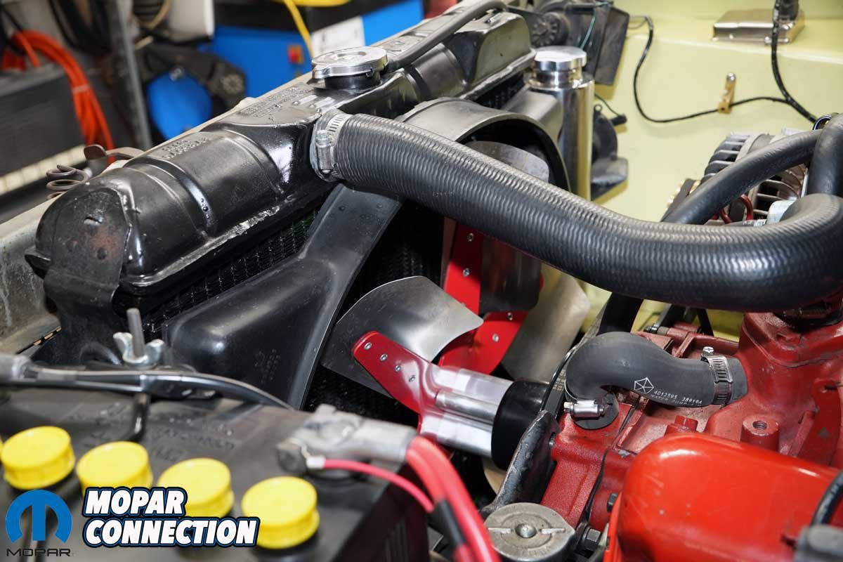 We pondered why each aftermarket radiator would not accommodate the factory shroud. It turns out, the aftermarket radiators are designed for various aluminum sheet metal shrouds that house an electric fan. Electric fans work well but adding an electrical load to the minimal output alternator seemed like a poor idea, similar to our thinking of having an aluminum radiator in a stock Dart.