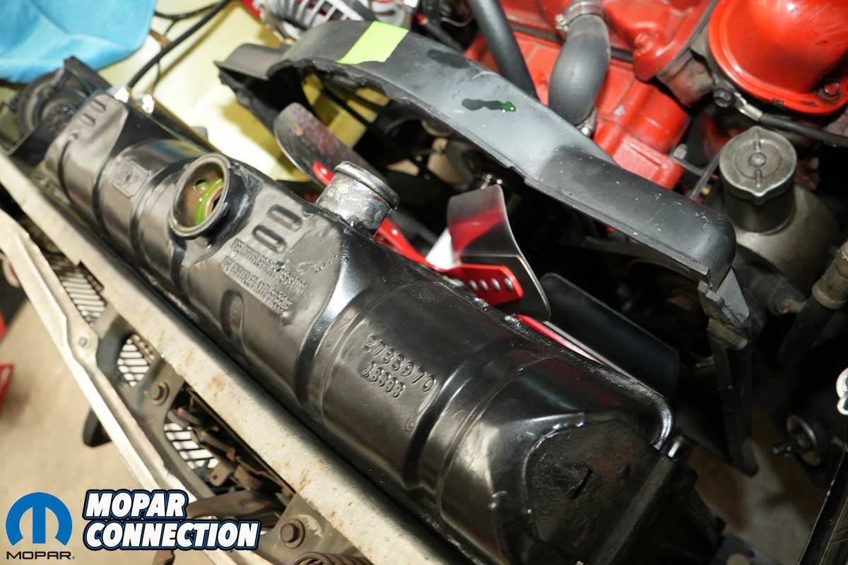 Above Left: The factory radiator served dutifully for 56 years, but in the last year, it started leaking, and after the initial repair, it leaked three more times. Above Right: The Dart was originally an air conditioning-equipped vehicle, so it came with a factory shroud. We prefer to use the shroud with the new radiator.