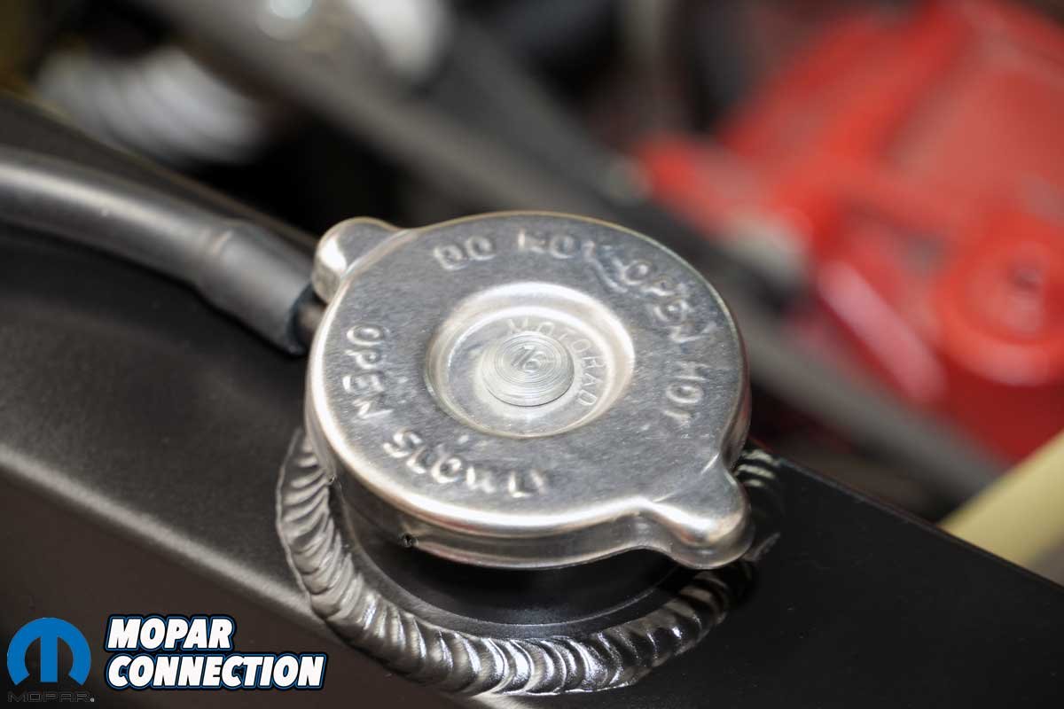 The cap we selected was the factory 16-psi cap. With a 50/50 mixture of water and antifreeze, our boil-over protection was 220°F. With the cap adding 16 psi, we added another 48°F (3°F per psi) for a 268° boil-over protection.