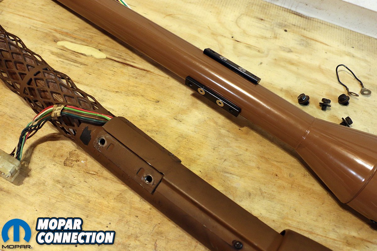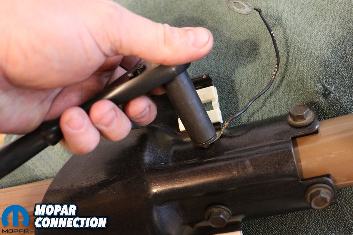 With our Charger’s factory column removed, we matched up the factory matte brown hue to a “Clay Brown” (color code RAL 8003) in our provided book of color swatches. From there, ordering was pretty easy: Flaming River has pre-measured their columns for manual or power steering box applications, although they do offer several length options (28″, 30″ 32″, 33″ and 35″). The shaft itself is an overall length of 45-inches (including an additional slipshaft extension), allowing for 1 1/2-inches of slip movement. With our Flaming River manual steering box already installed a few months earlier, we were happy to receive a universal joint included in the kit, ready for “direct connection” to steering box (get it? LOL). Although the column’s internal loom is GM, Flaming River includes female adapter plug that plugs right up to original wiring harness.