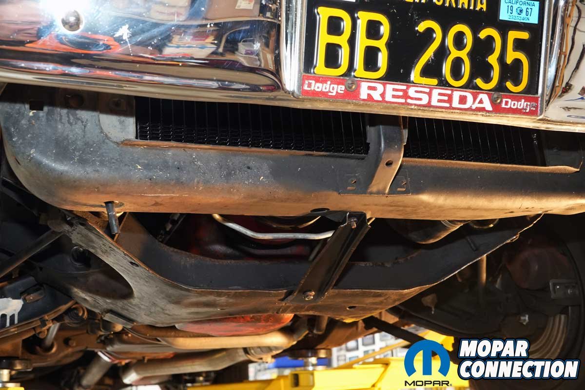 When we ordered our Glen-ray radiator, we spoke with Bob Schirmer, who informed us that our original radiator part number was not one he carried. Our radiator was a high-altitude core structure specifically designed to perform optimally at elevated heights (even though the Dart was assembled and sold in Los Angeles). After some discussion and seeing we were not overly concerned with the original part numbers, we settled on a 1967 Dart radiator (part number 2785973) with provisions for an automatic transmission cooler.