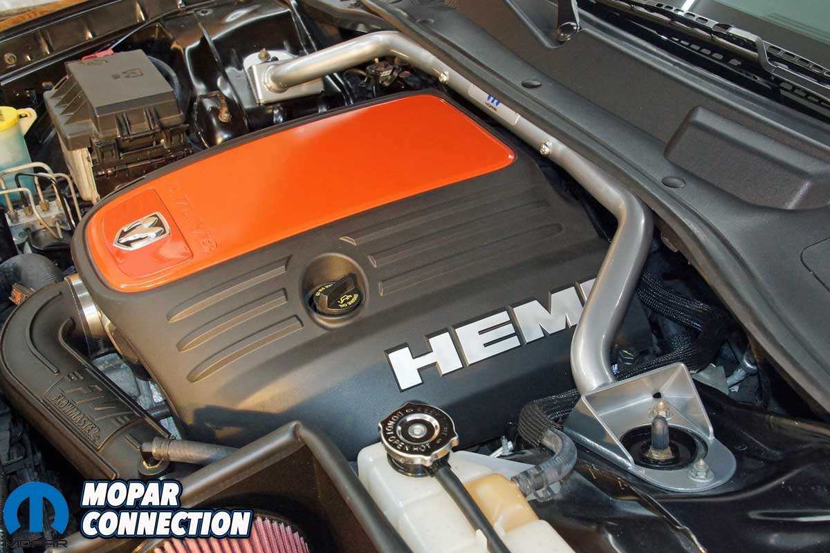 The Mopar Performance strut brace kit includes a gray powder-coated steel brace with a Mopar emblem plate affixed to it. Additionally, the kit has all the installation mounting hardware to install it in ’08-’11 Challengers, ‘06-’11 Chargers, ’05-’11 300Cs, and ’05-’08 Magnums. Though the strut brace fits many models, it is not compatible with Mopars equipped with a Shaker Hood Scoop or an SRT Hellcat Engine.