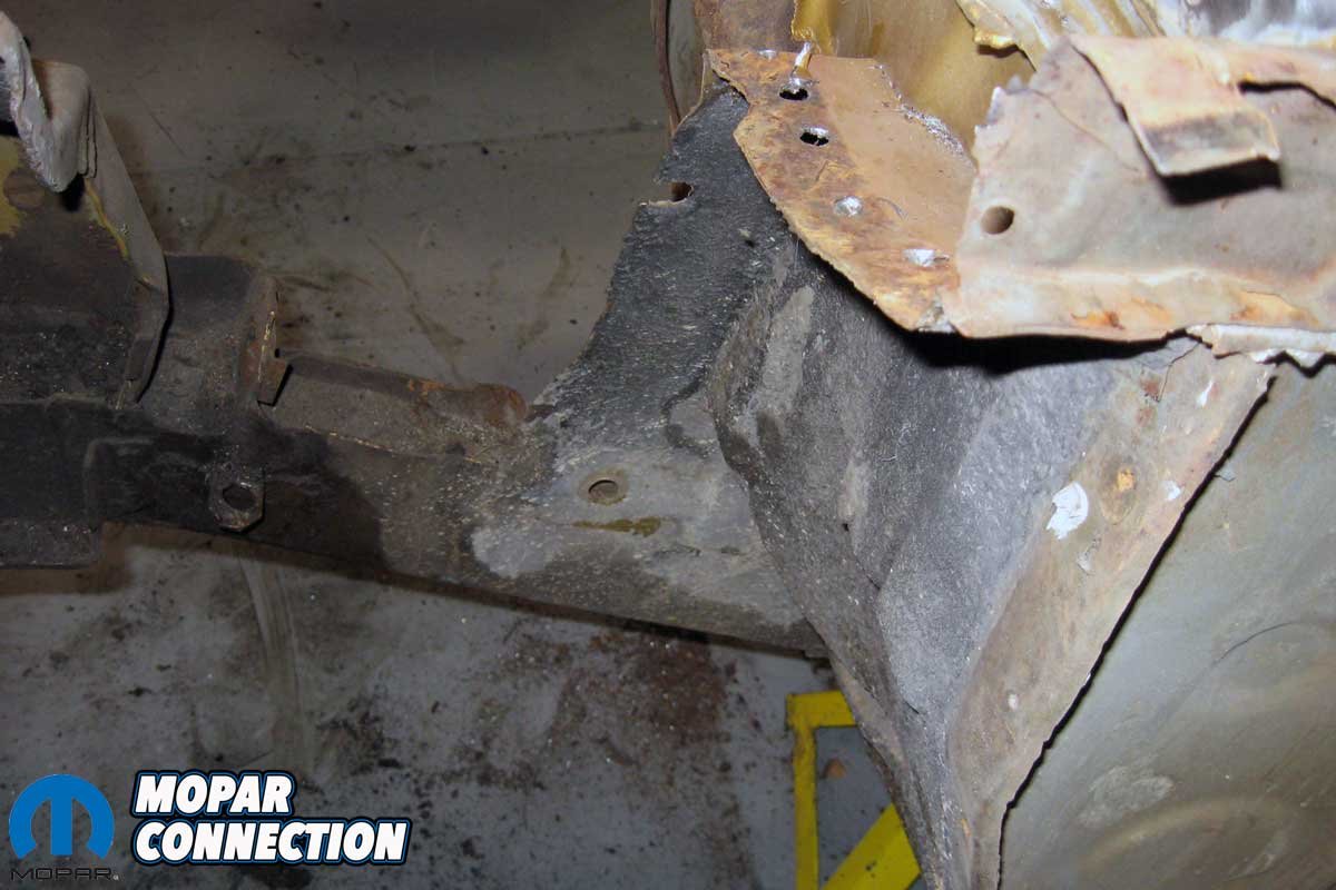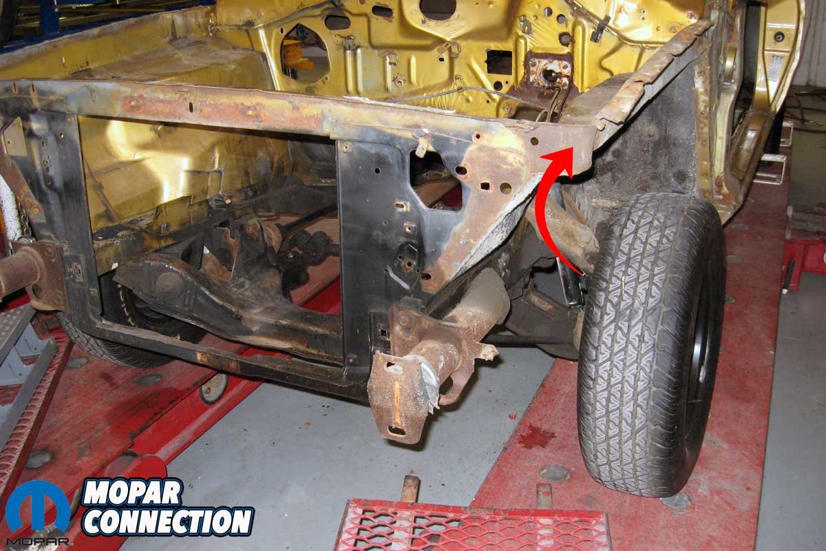 The Dart was rougher than expected. We found rust in the front floor pans, the outer quarter panels, the inner quarter panels (wheel wells), at the base of the rear window, and previous accident damage to the driver-side inner fender panel (apron), which had been poorly repaired. While plenty of bodywork needed to be completed, we focused on installing a new apron, which we sourced from Year One (part no. J74LH) for this editorial.