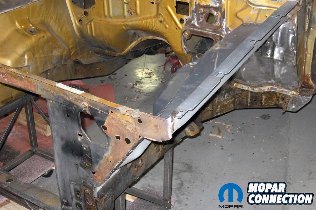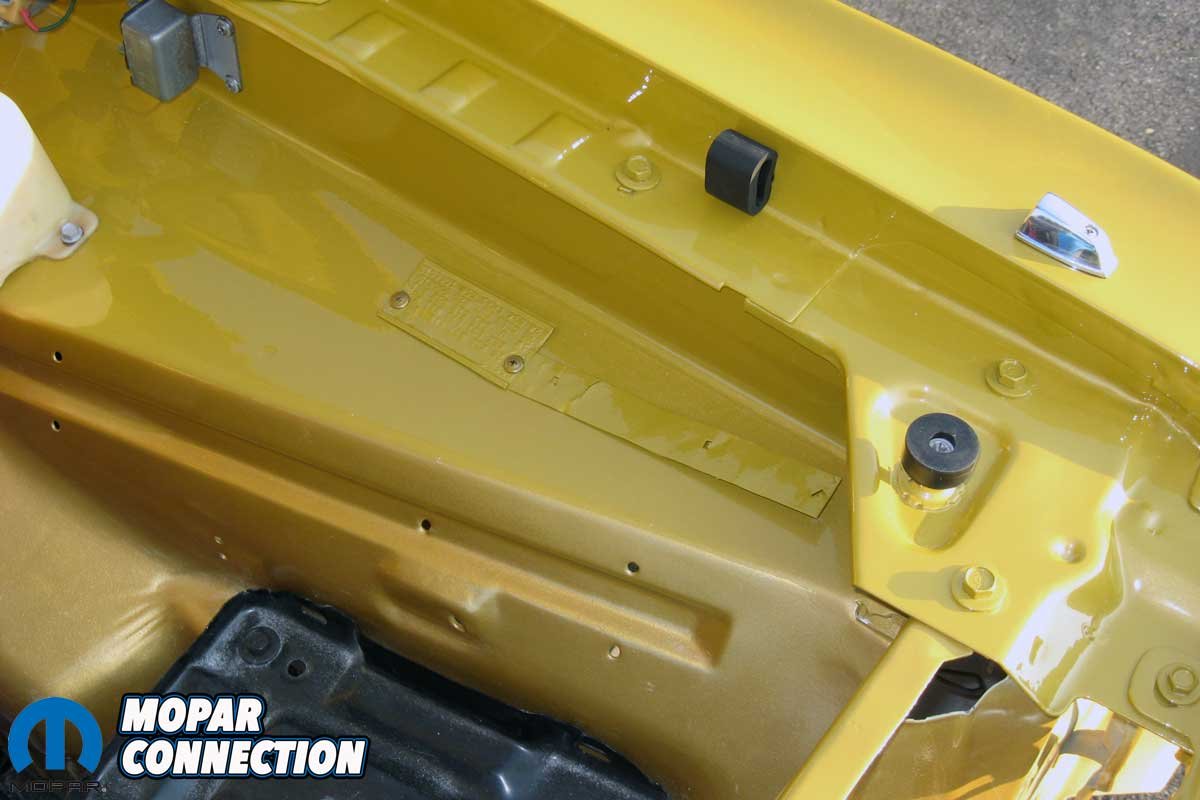Year One states the inner fender panel would have all the correct contours and dimples, and the mounting provisions for the hood hinges were included. The apron flawlessly fit when we dropped it onto the Dart’s frame rail—all the contours, dimples, and holes appropriately aligned. The quality of the part was so superior we did not drill or fill a single hole in the apron.