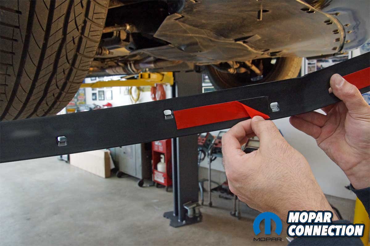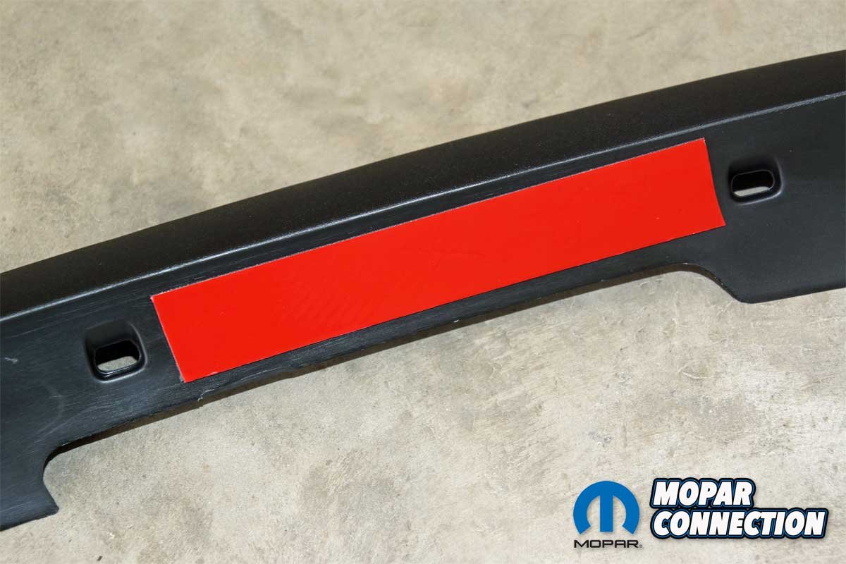 With the spoiler locked in place at the center, we moved to the driver’s side of the spoiler to secure it to the Charger. We unpeeled the third adhesive strip and aligned the spoiler with the grill opening and the scallop for the fog light opening before securing the spoiler. The exact process was followed for the passenger side.