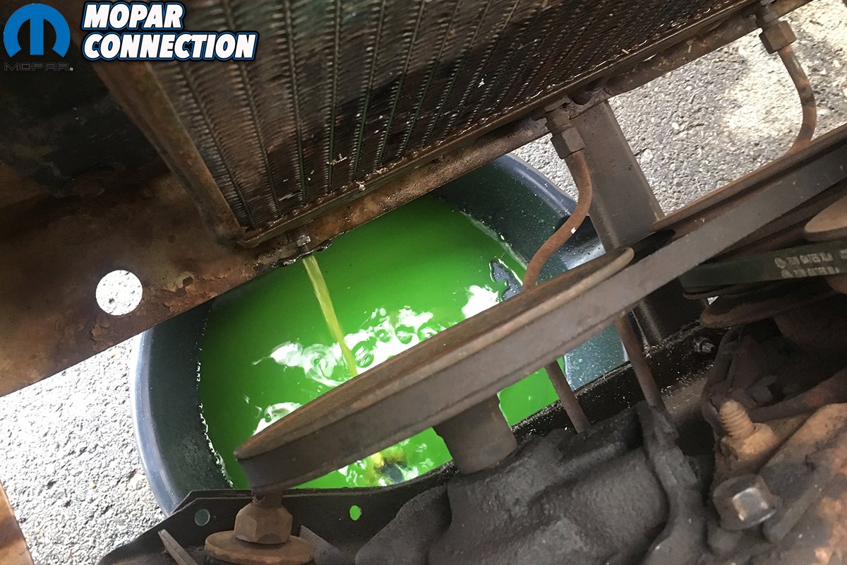 The radiator didn’t show any pinhole leaks, and we had changed out the worst of the two radiator hoses with a fresh one. A new thermostat was slipped in as well. The Slant-6 spun a clutchless mechanical fan and drew air as fast as the engine could spin. Clearly a flush for the radiator (and cooling system), fresh coolant and greater airflow was what was needed.