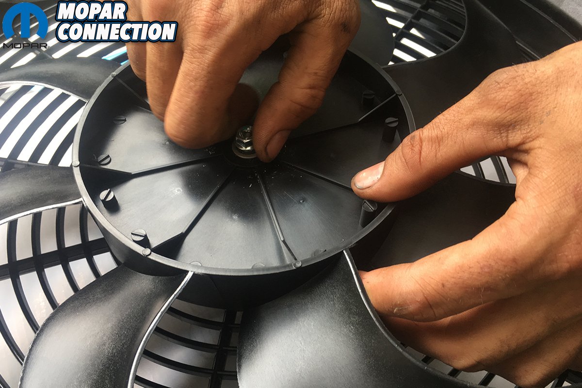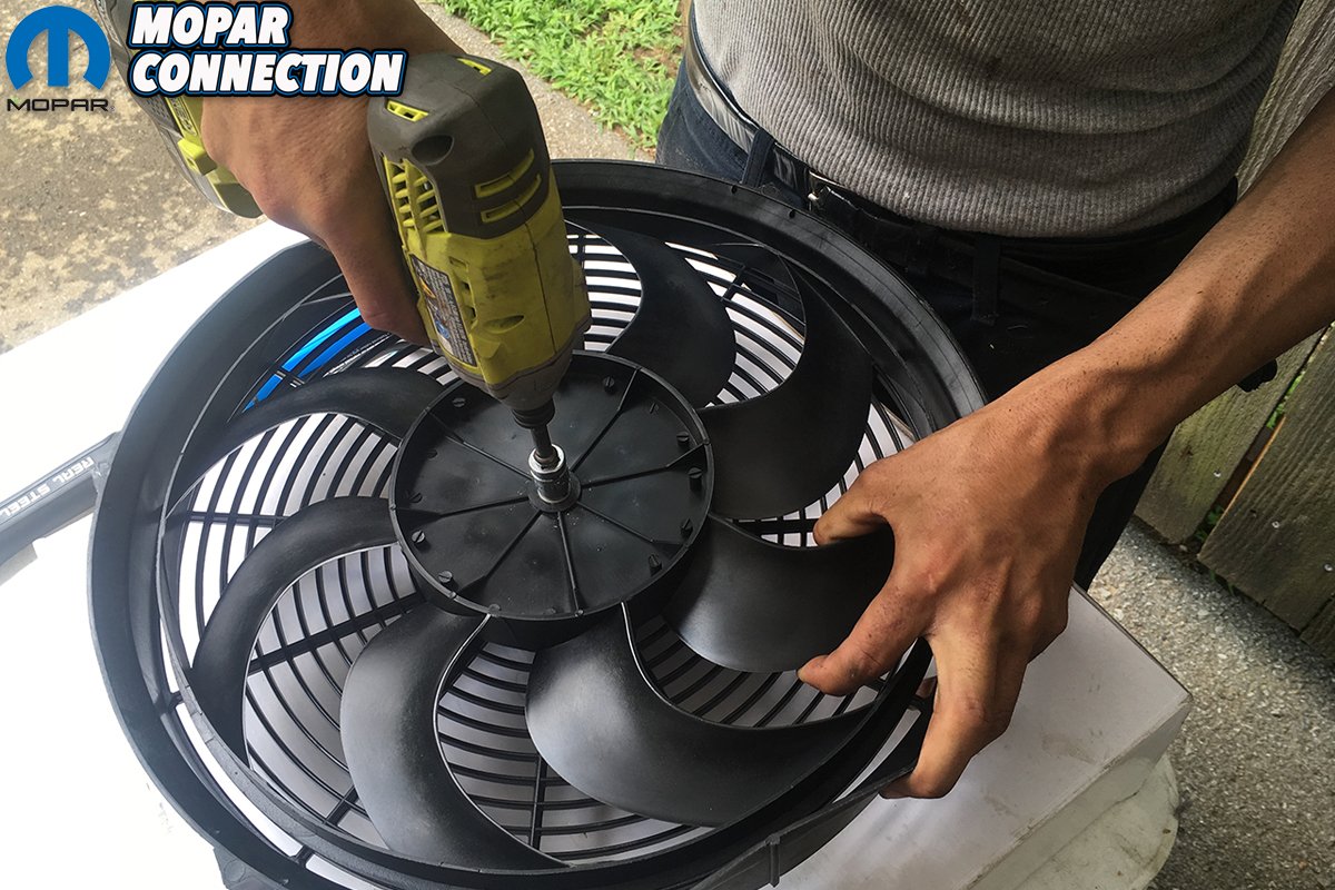 Above: Because we needed to mount the fan between the front of the radiator and the grille, the Proform fan’s S-blades can be unscrewed and flipped over to work as either a pusher or puller.