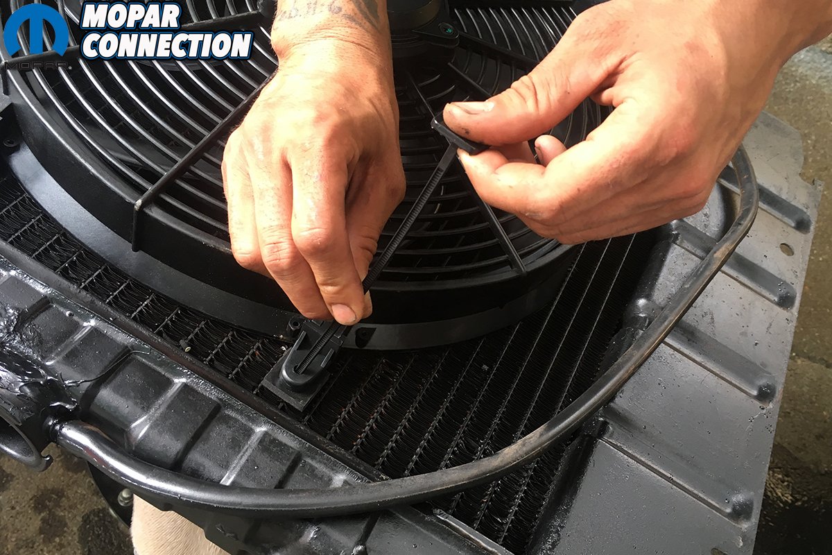 Above: Proform includes a locking nylon tie mounting kit that feeds through the molded-in mounts and through the blades of the radiator where you slide a pad over the nylon tie. With a pair of snips, you cut off the excess and you’re ready to roll.
