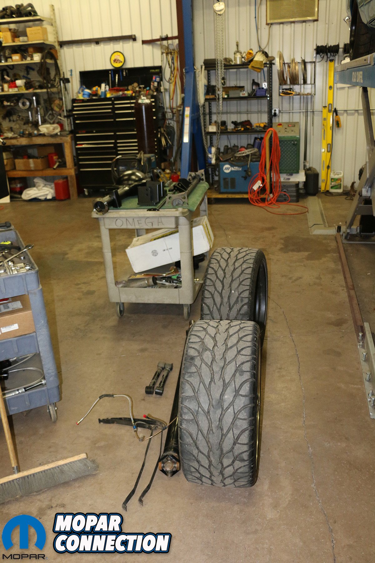 Above: Without going through a ton of details, you need to start off by removing your rear suspension. We already had the the old Street-Lynx to remove but most of you will have leaf springs that need to be removed. The rear axle, brake lines, fuel lines, exhaust, driveshaft and gas tank will also need to be removed.