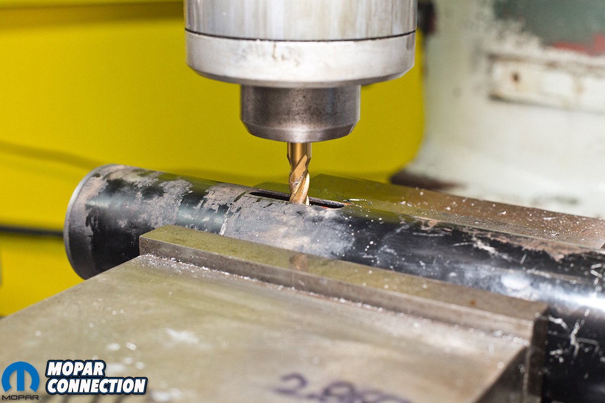 Top Left: Measured and marked where the tube will need to be lengthened for access to the set screw. Top Right: The local machine shop lengthened the slot an extra 1/2″. Bottom Left: There will need to be a new hole cut into the column for the wiring harness at 2′ above the old hole. Bottom Right: The machine shop cut a DD into our steering shaft.