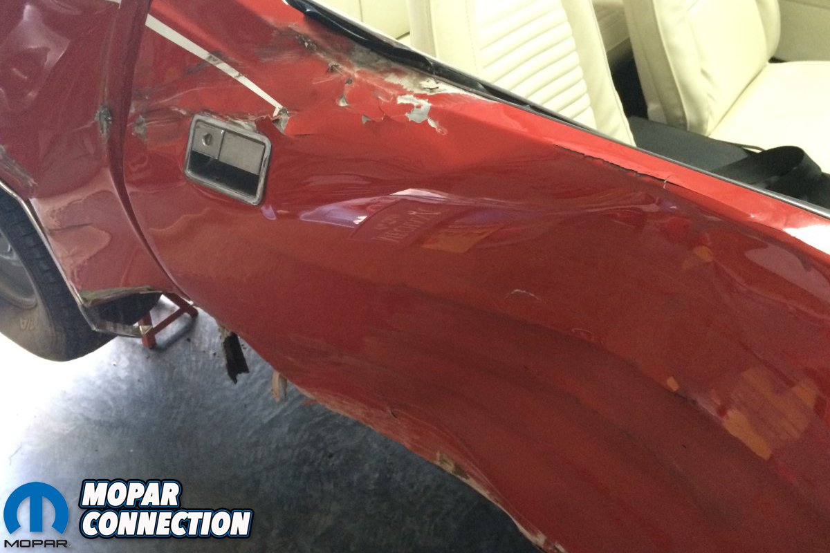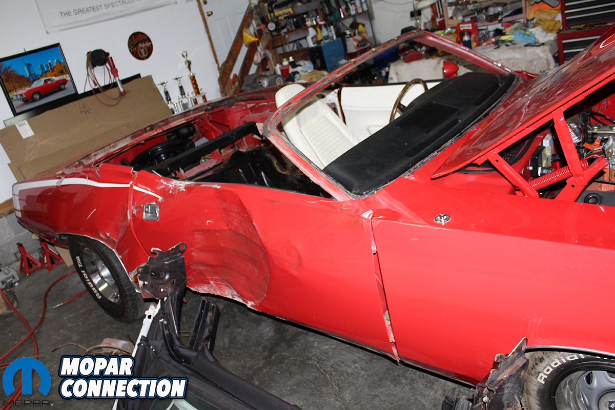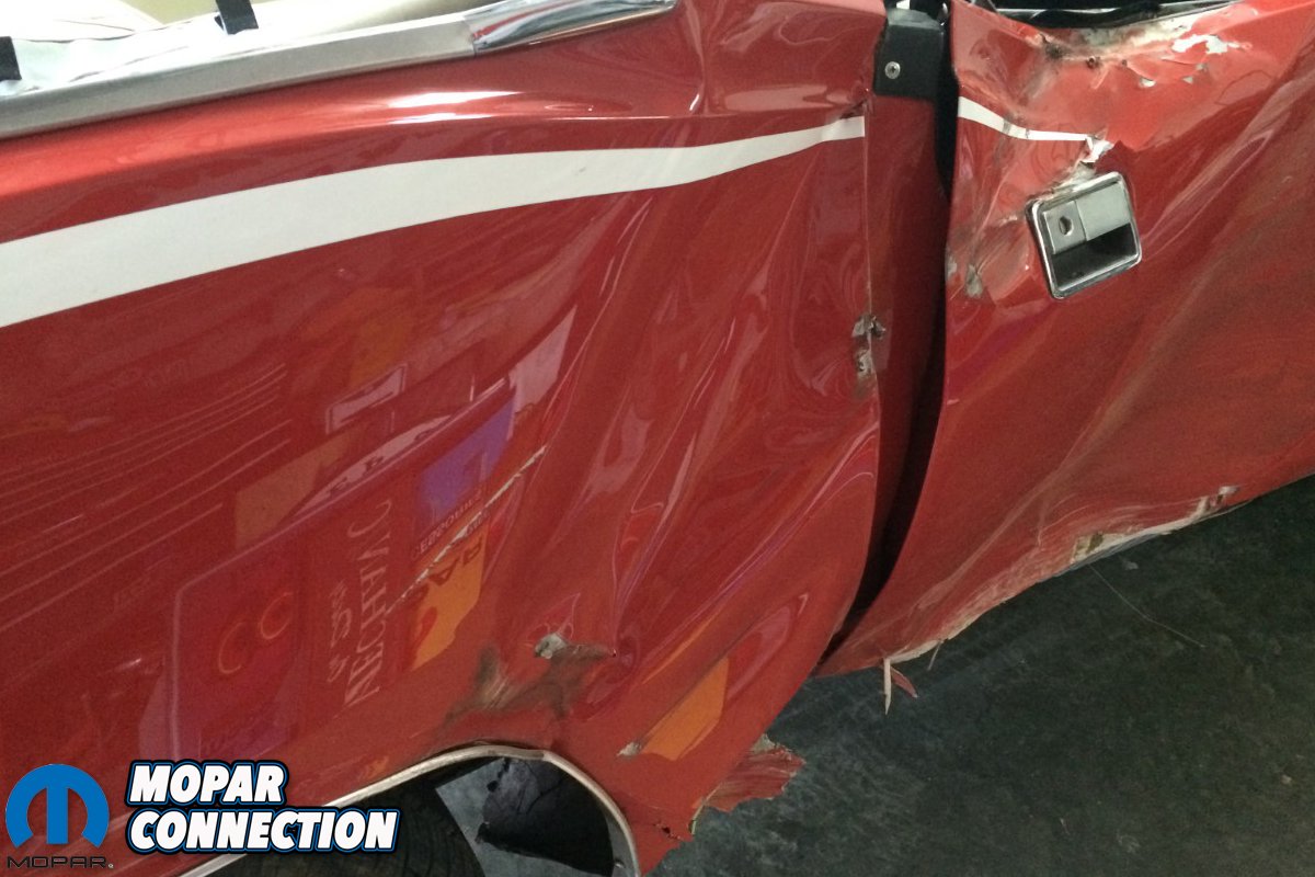 I missed the deer but took out a stacked solid stone mailbox. The ‘Cuda was hammered right at the front door and quarter panel. The impact was at the weakest point of the convertible, right at the door jam and rocker. At first I hoped it would only be a door, windshield, quarter panel, and replace the cabin floor and trunk while it was being repaired. But after a complete inspection, the hit was so hard that even the driver’s side quarter was also bent. Thankfully, I had the ‘Cuda insured. The adjuster wanted to total the car and my trusted body shop didn’t think the car could be saved. I wasn’t about to give up my dream car no matter what.