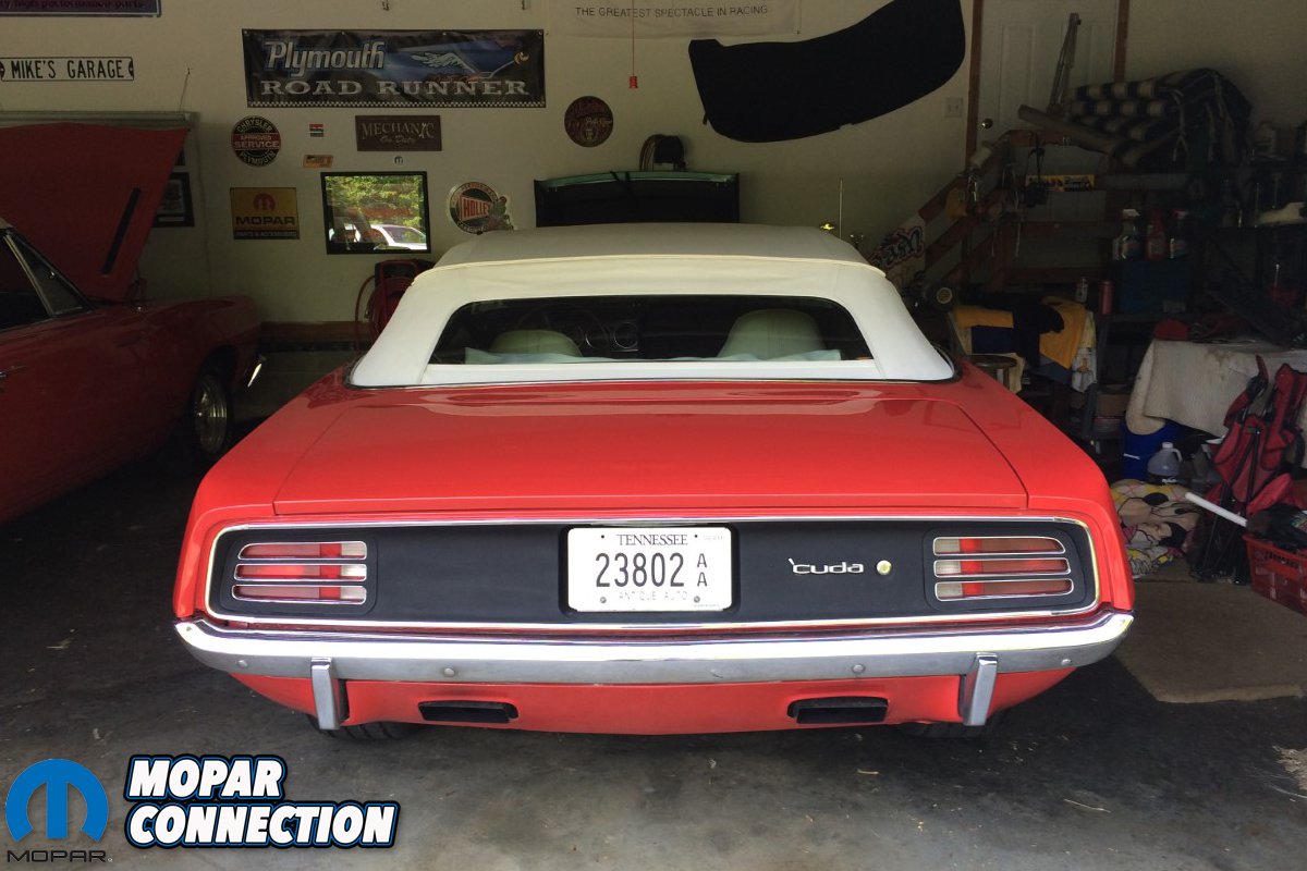 I tried about 20 years ago to get a Barracuda convertible from New Jersey. After I got it was just too rusty, so I sold it to a guy who was building jump cars for the TV show “Nash Bridges.” So after restoring and selling a true A12 ’69 440 Six-Barrel Road Runner; a 1971 440, 4-speed GTX; and a 1970 4-speed Road Runner, I came back to looking for a Hemi ‘Cuda convertible tribute car. Late one night on eBay, I saw a “turn key” tribute Hemi ‘Cuda convertible with less than 10 minutes left on the auction. The pictures looked good and it had a video of the car running. So I pulled the trigger. Bam! I finally had a Hemi ‘Cuda convertible.