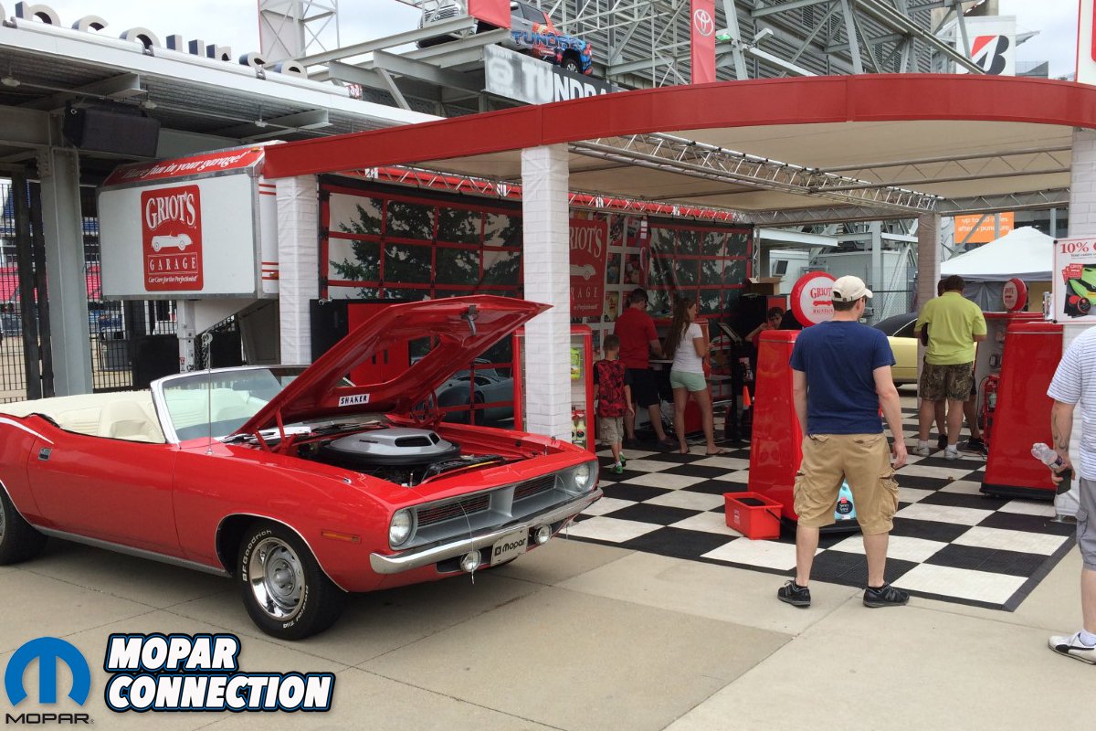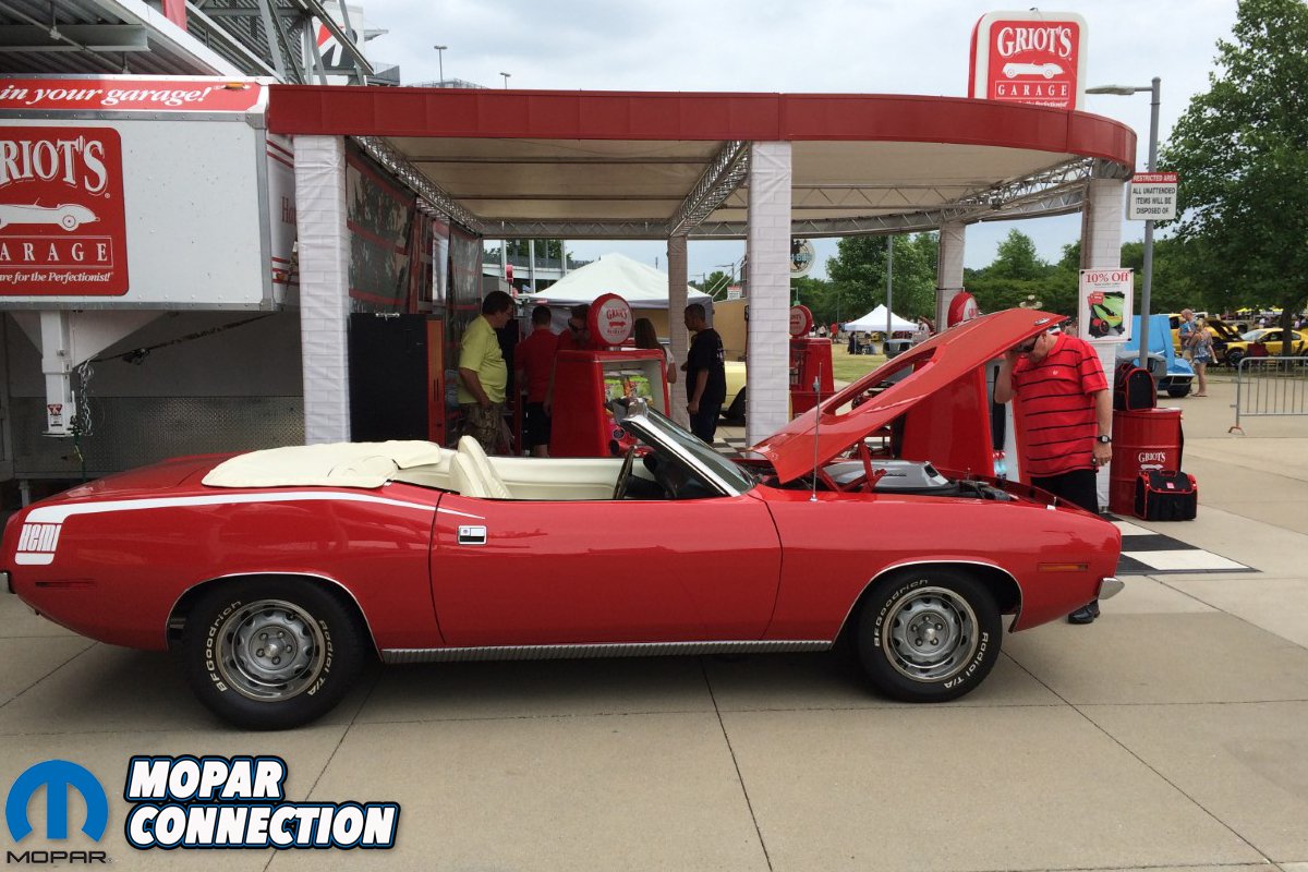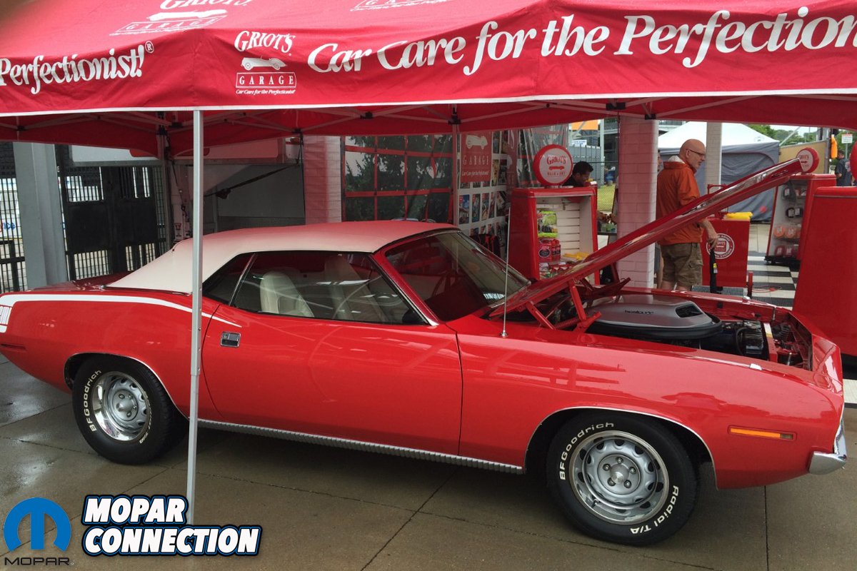 Above left: I took the car to several cruise in’s and it was always a hit. The Music City Mopar Club, where I serve as vice president, always man the show car entry gate at the Nashville Goodguys event. Of course I had to take the ‘Cuda. One hour after the gate opened it began to pour rain. The guys from Griot’s Garage came by and said, “We want your car in our display and we have a tent to keep it dry?” My response? “Done.” Above right: The second day of the show the sun came out and the top went down!