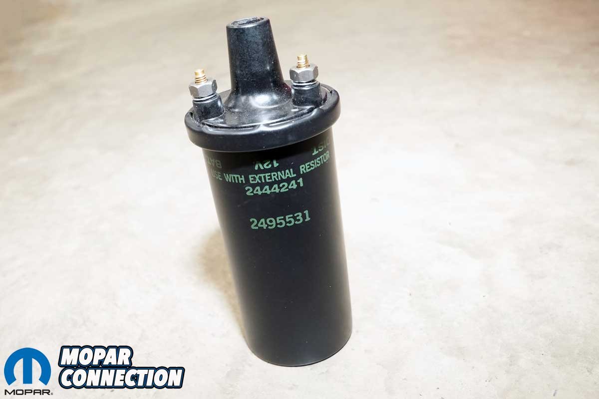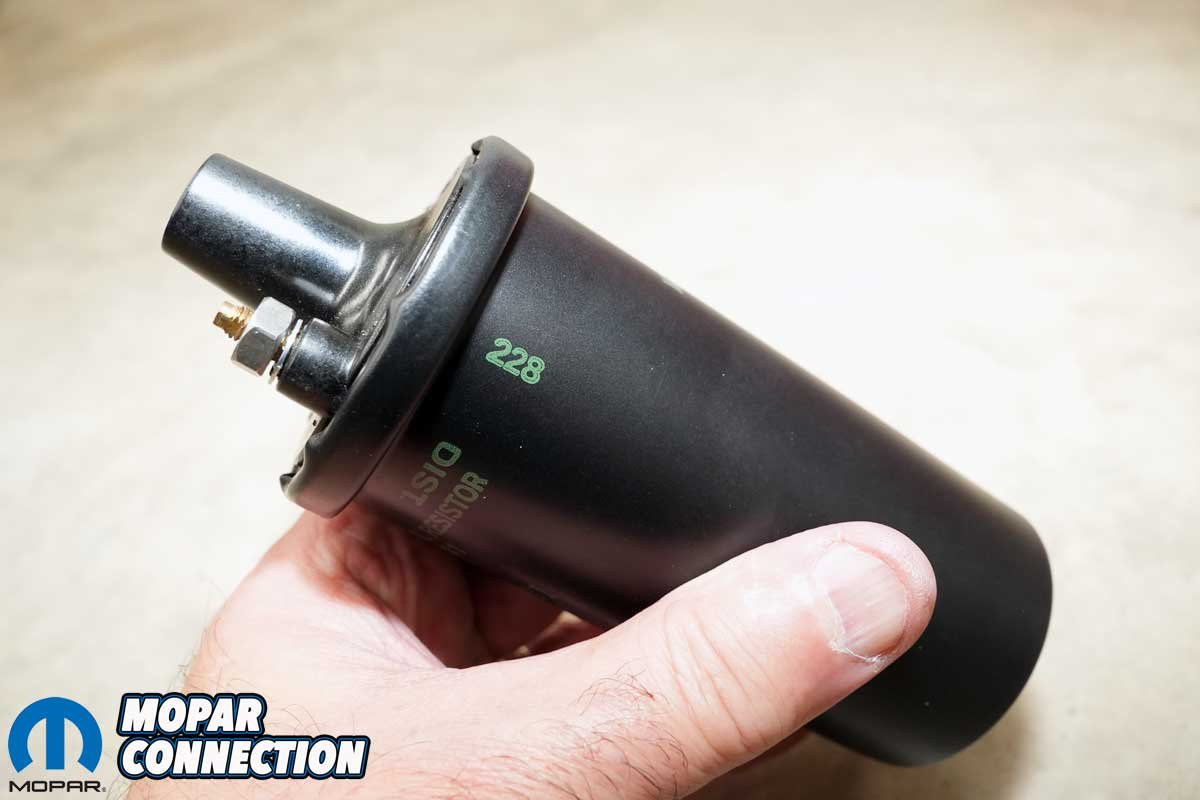 Instead of reusing the old coil, we turned to YearOne, who supplied a correct reproduction canister-style coil, complete with the original part number, markings, and an accurate 1968 date code. Our Road Runner was built on or around June 26th, and the new coil (Part no. MDC68228) was date-stamped “228,” indicating production in the 22nd week of 1968, which falls between late May and early June, a nearly perfect date for our car.