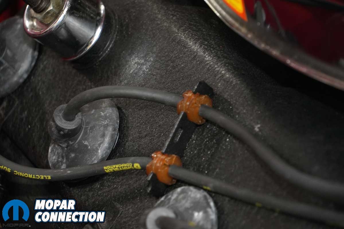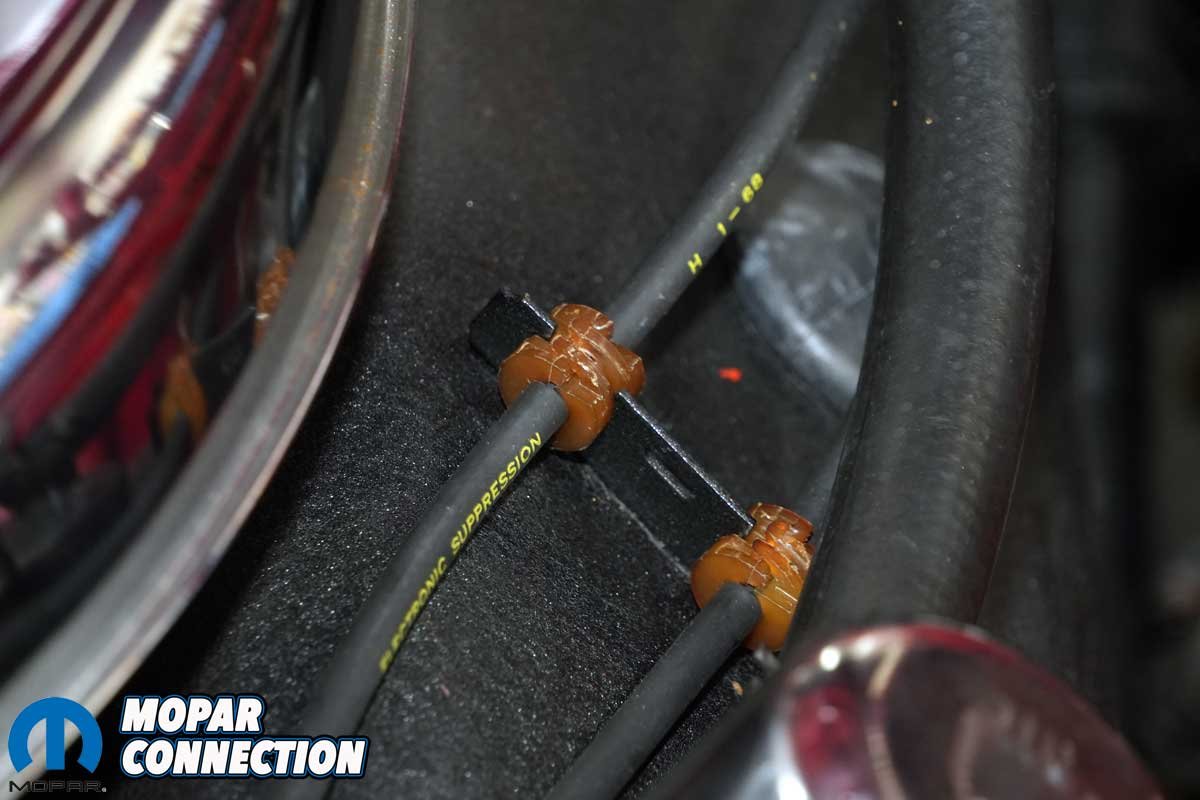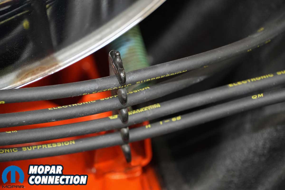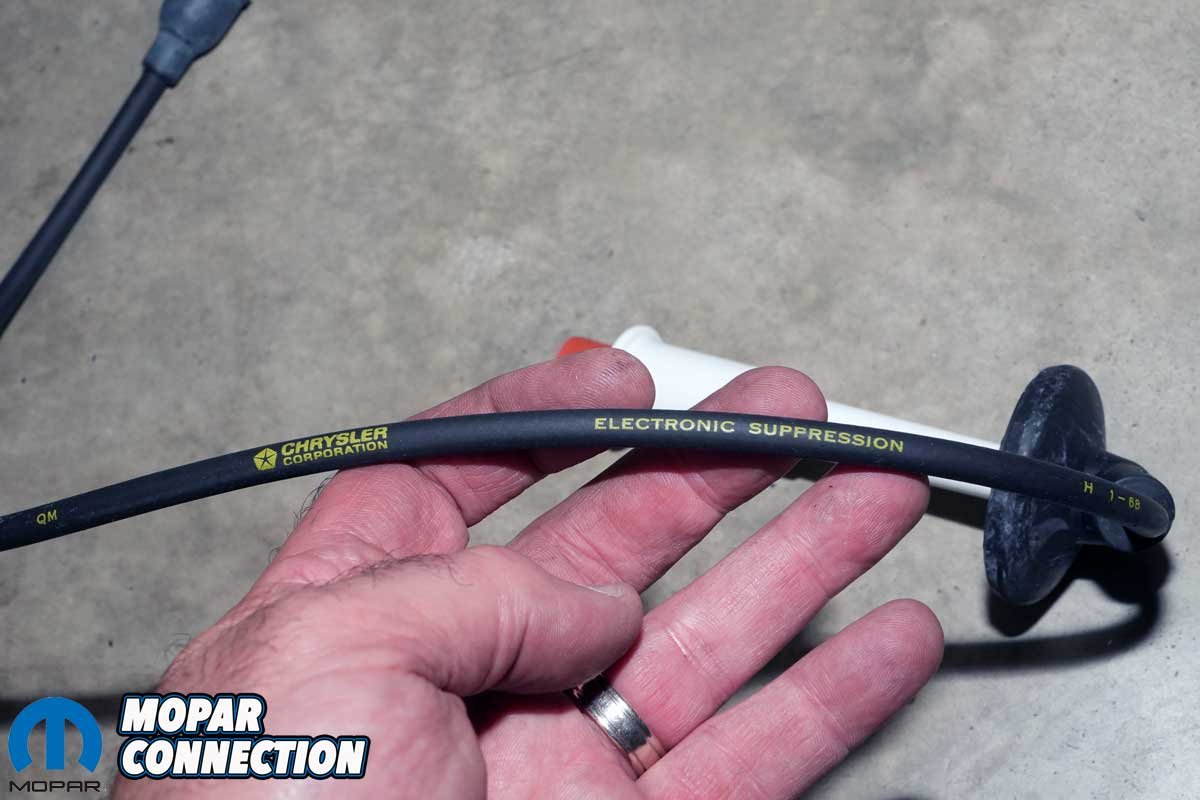 Above Left: To complement our updated ignition system, we picked up a reproduction spark plug wire set from YearOne designed specifically for 1968 Mopars. Above Center: The wires are an exact match to the originals, featuring the correct yellow factory-style labeling along with the iconic Chrysler Pentastar logo, perfect for a detail-oriented restoration. Above Right: Just like the originals, these wires are date coded. Our set was marked for the first quarter of 1968, which aligns well with our Road Runner’s late-June assembly date, helping maintain authenticity under the hood.