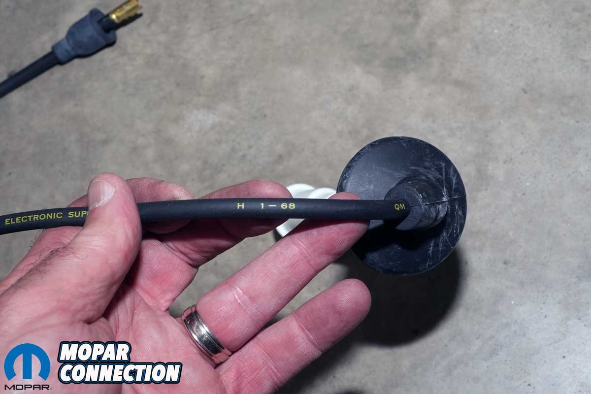 We carefully routed the wires, using the cleaned original grommets to anchor plug wires 5 to 8 to the valve covers. To install each plug wire, we pulled back the boot, added a dab of included lubricant, pressed the ceramic onto the plug until we felt it click, and then slid the boot back into place.