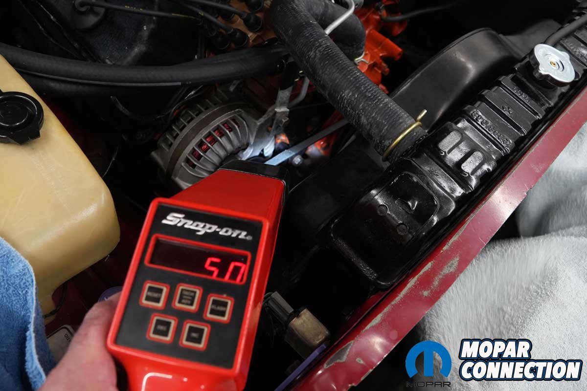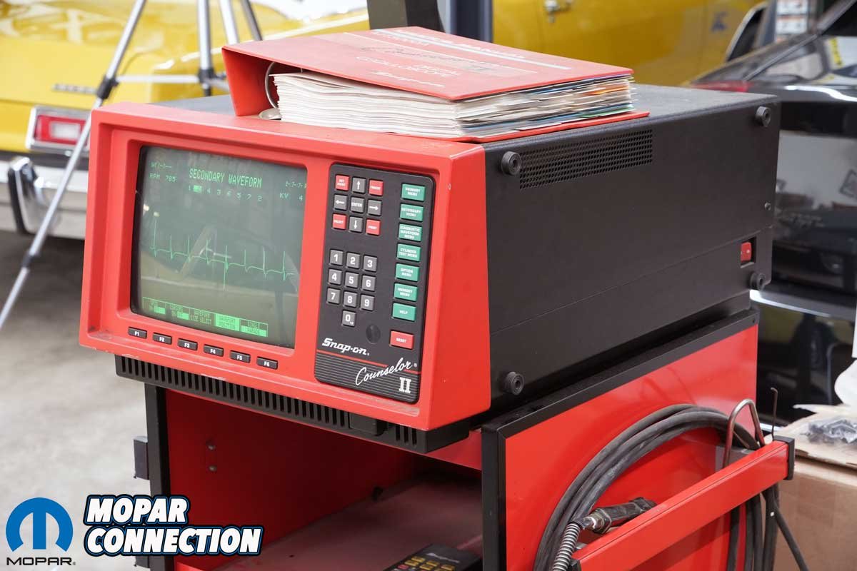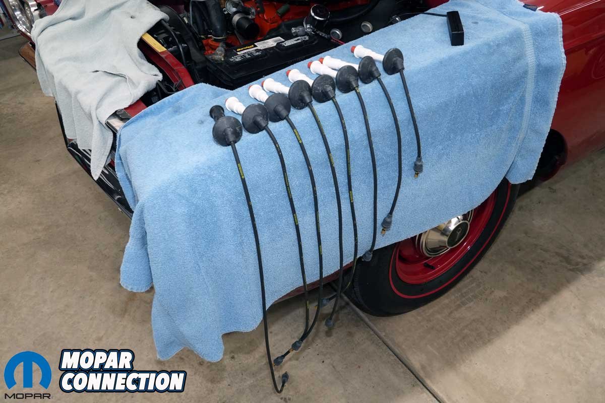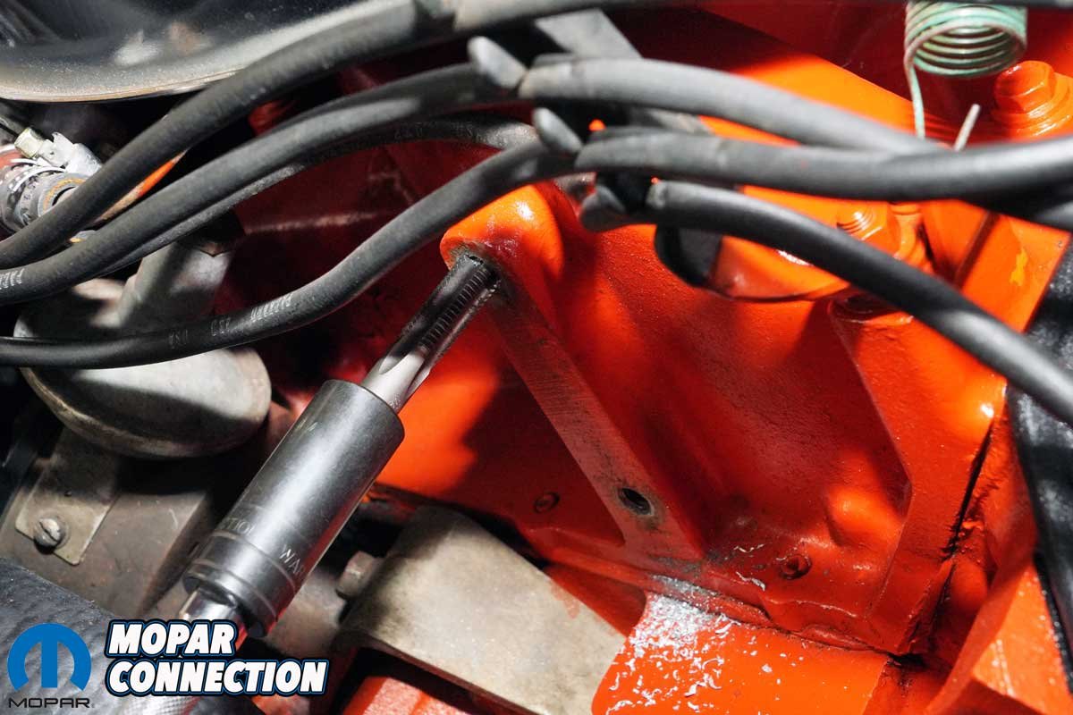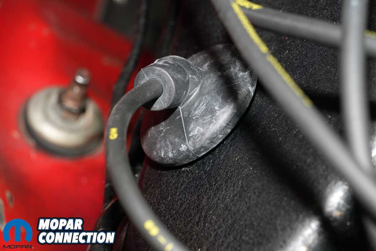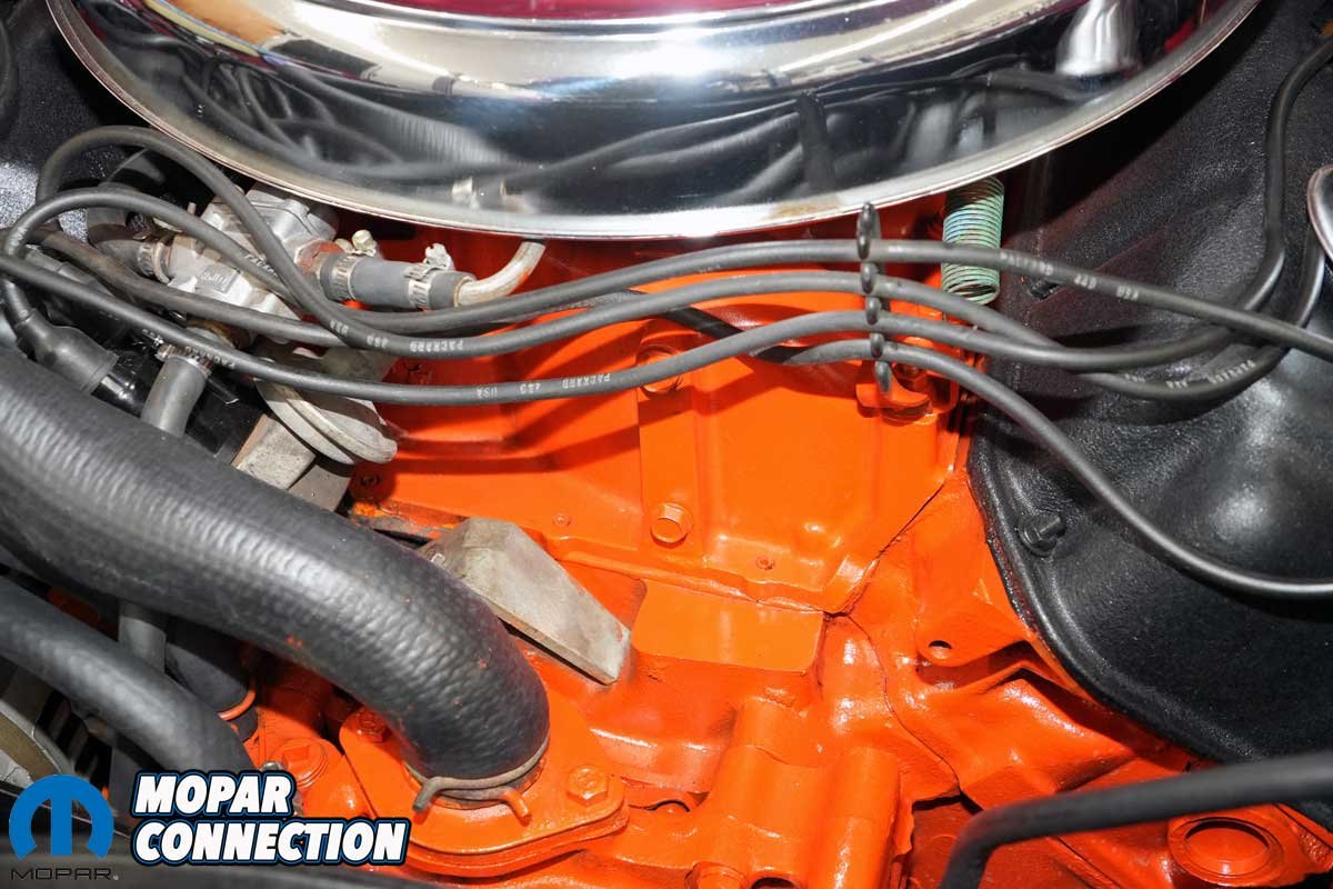 Then there were the spark plug wires, over 40 years old and showing their age. When we clamped our Snap-On inductive timing light to plug wire #1, the strobe would reset and flash erratically. We tested the light on another car, and it worked perfectly, confirming that something in the Road Runner’s ignition system was breaking down.