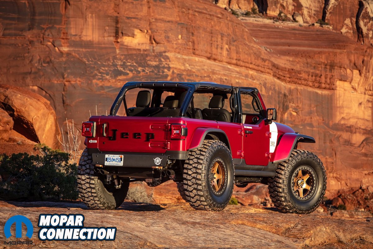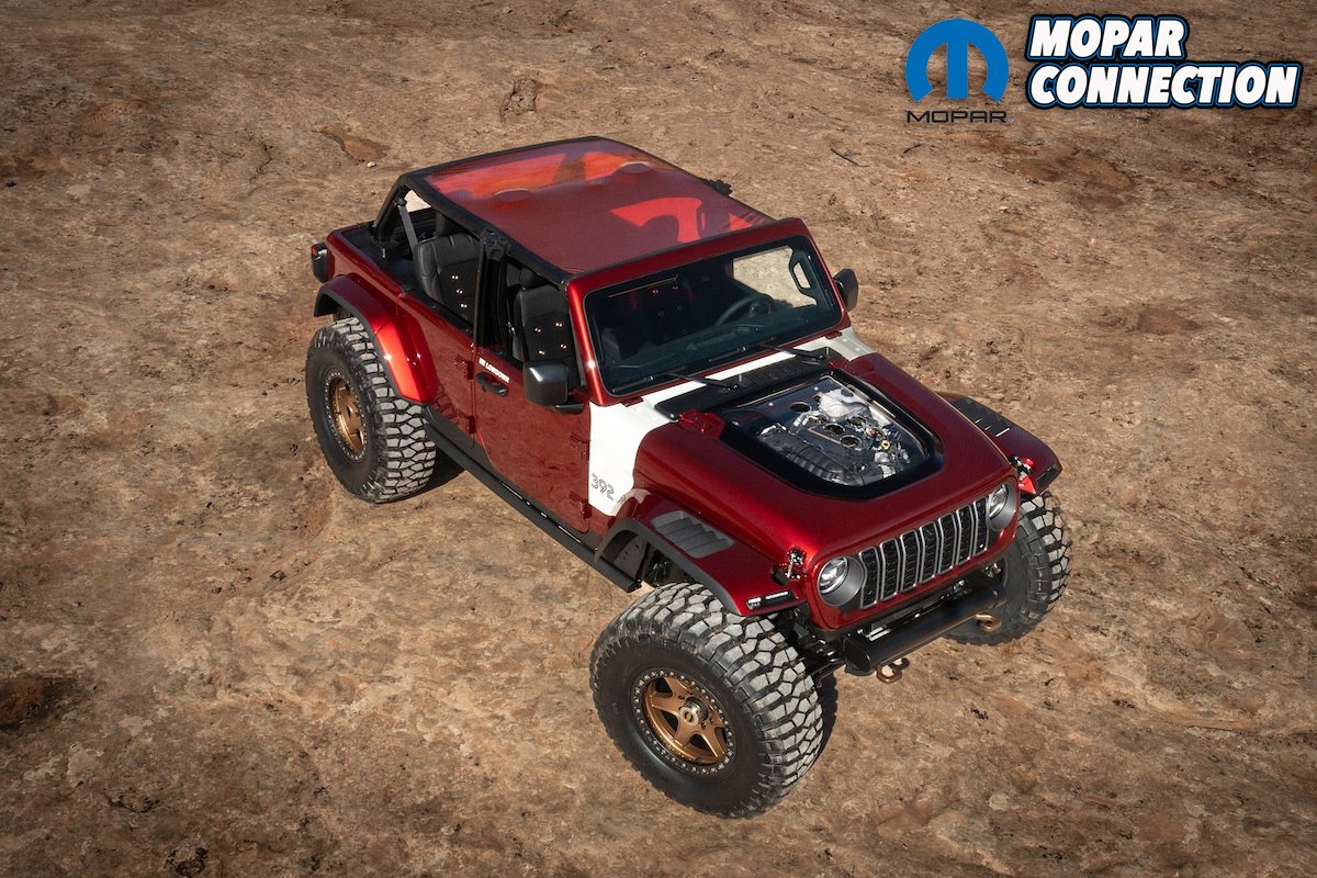 First, we have what is likely to be the favorite 2024 Moab concept vehicle, as it is based on the Jeep Wrangler Rubicon 392 – complete with V8 power and a window on the hood. The Low Down Concept was designed to pay tribute to the Jeep Wrangler Lower 40 Concept, which debuted in Moab 15 years ago with V8 power.