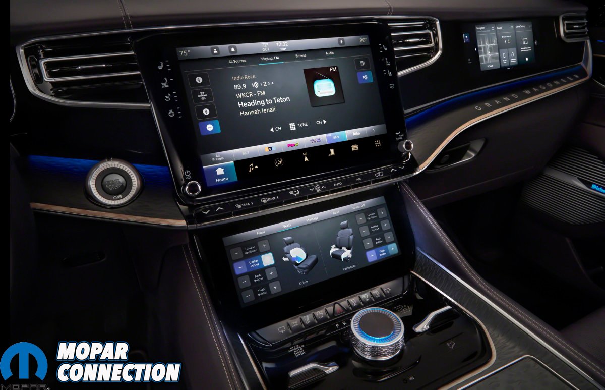In the back seat, there is another 10.1-inch HVAC screen along with a 10.1-inch entertainment screen for each of the second row seating positions. All of these screens run on the UConnect 5 system and the sound is provided by a super-premium McIntosh sound system featuring 23 speakers and a 24-channel amplifier.