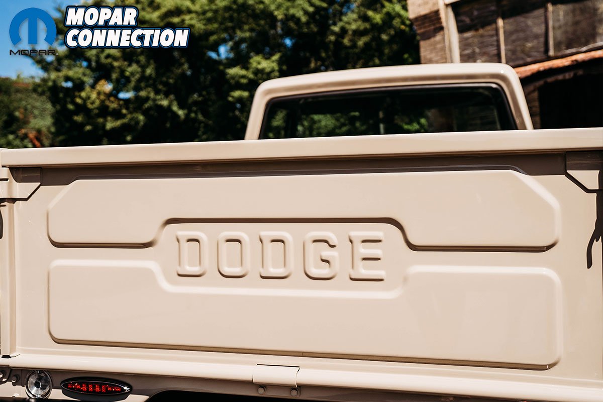 Randall and Brian handled all of the body and paint work on the build among other things, transforming the once farm truck into the sleek and styling version you see today. Originally painted black from the factory, the D-100 was painted a coat of modern Ram “Mojave Sand”. The grille, bumpers and trim work were painted matte black for a classy look to compliment the Mojave Sand paint job well.