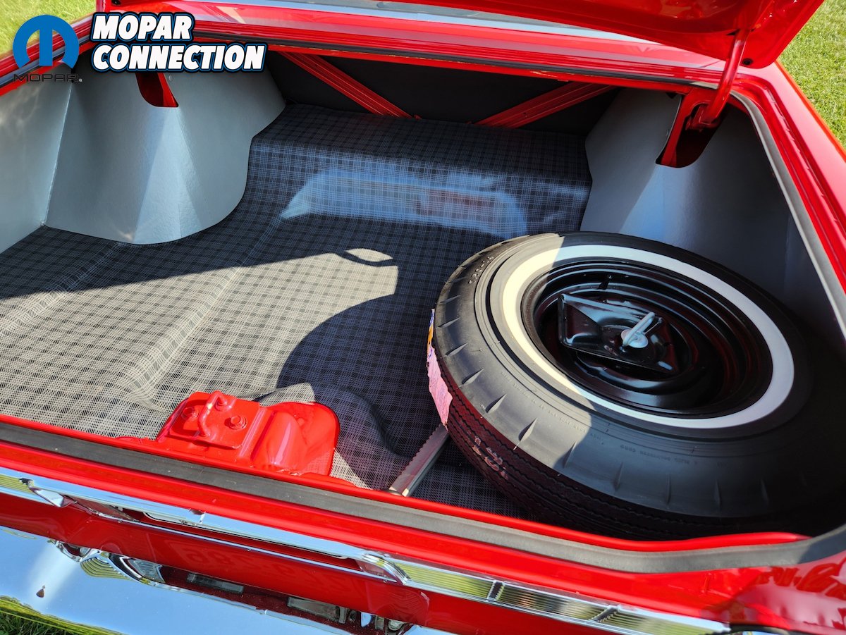 Furthermore, there were differences in how the spare tire was mounted. In the Canadian Fury, the spare tire was positioned in the right corner of the trunk, resembling the configuration found in U.S. convertible models. In contrast, the U.S. Fury placed its spare tire under the package tray, situated above the rear axle for non-convertible models. Lastly, the air cleaner on the Canadian version was larger and less performance-looking than the US-built one.