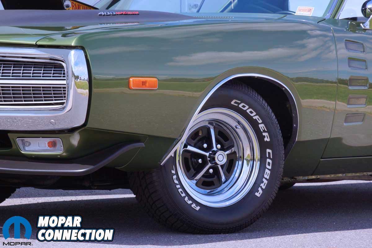 The front-end suspension remains stock with a short-long arm (SLA) design and a 0.92-inch anti-roll bar. At the rear, the leaf-spring suspension still supports the chassis. A 0.86-inch diameter rear anti-roll bar was standard with the Rallye package. The Charger still wears 11-inch front disc brakes and 11 x 2.50-inch rear drums. The brakes are applied via a manually operated master cylinder.