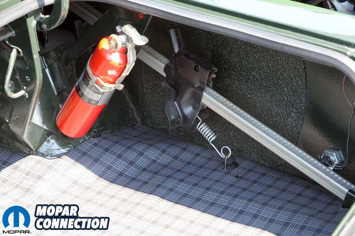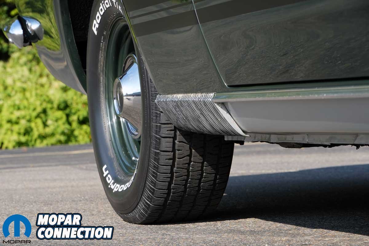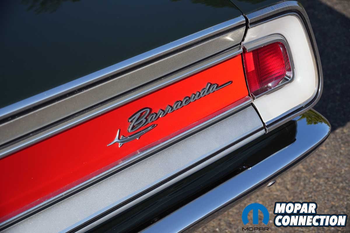 The Barracuda left the assembly line wearing a set of E70x14 red sidewall bias-ply tires, but the rolling stock now consists of BF Goodrich 225/70R14 (rear) and 205/70R14 (front) radial tires. After all these years, the stamped-steel 14×6-inch wheels remain and are still adorned by the dog-dish style ’68 hub caps.
