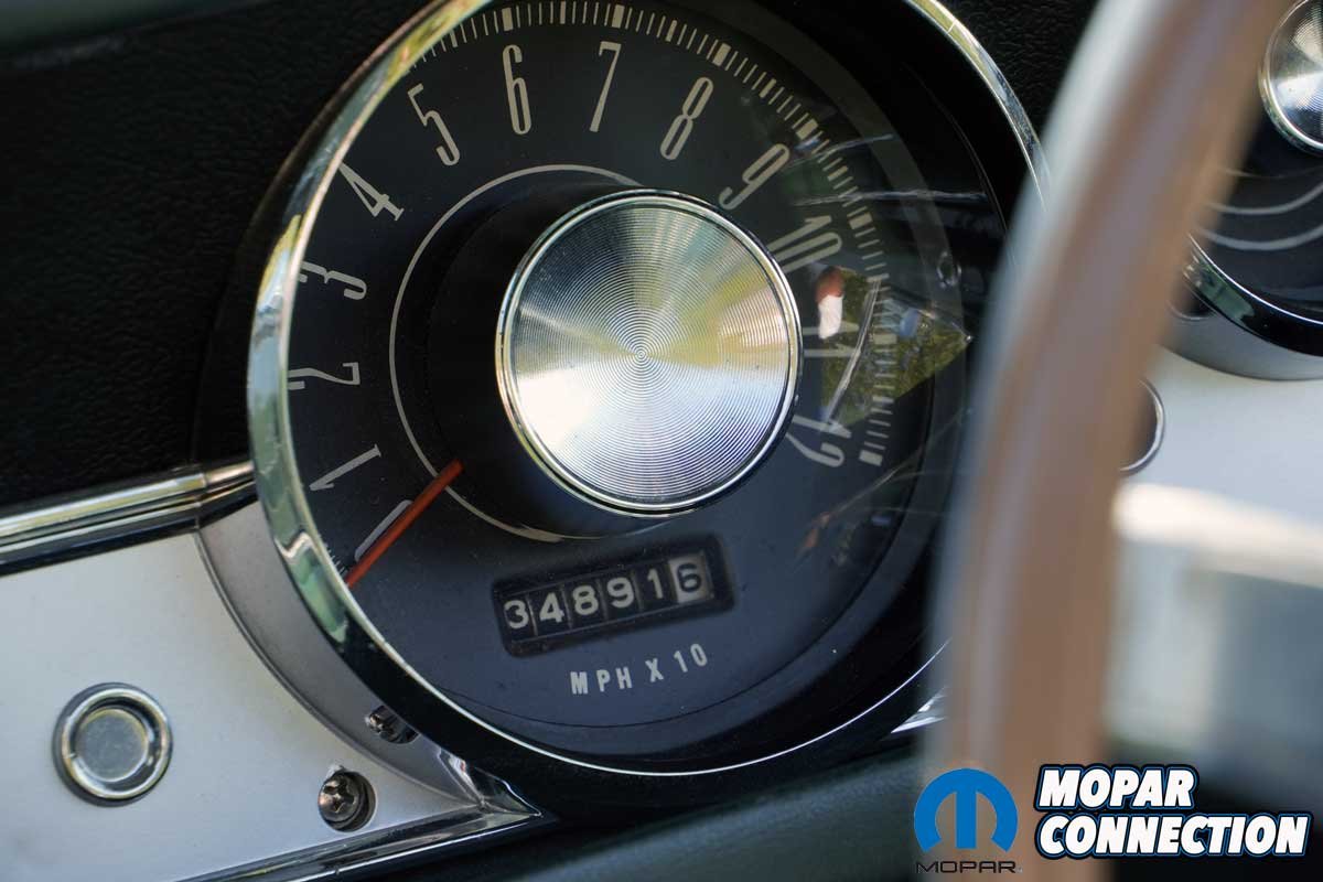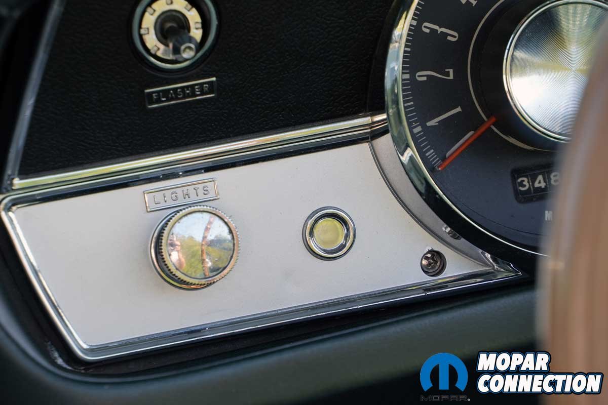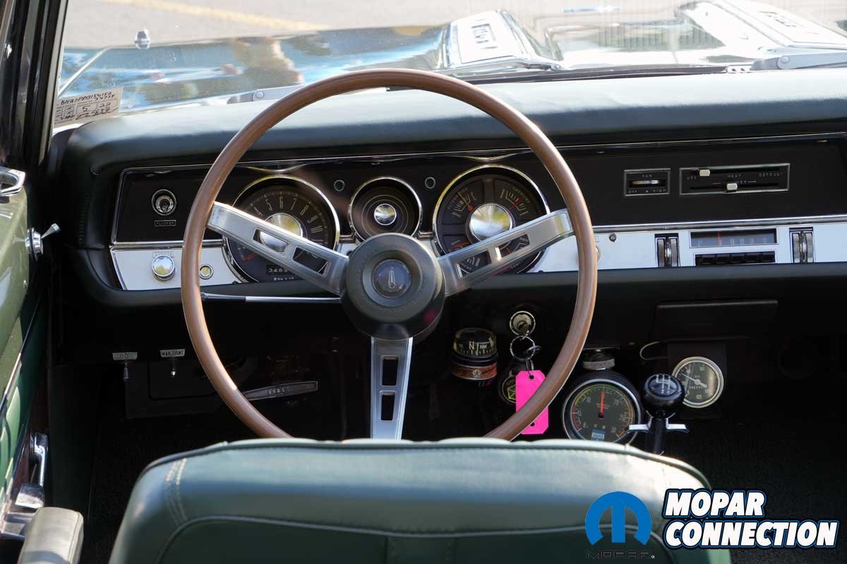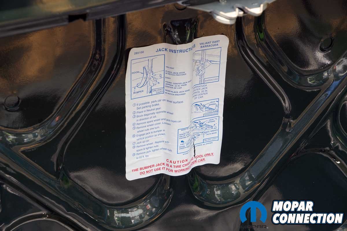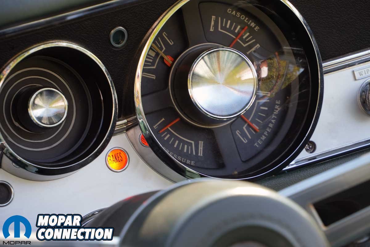 As with most convertible top vehicles, the interiors take a beating from the sun. Parise’s Barracuda was no exception. Prior to Sar’s purchase of the car, the seat upholstery and the carpet had been replaced with factory-appearing parts. Parise added the factory-style rubber Barracuda floor mats to protect the carpet.