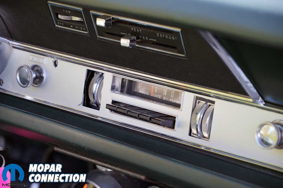 Additionally, the Barracuda came with wide sill and wheel lip moldings, hood-mounted turn signal indicators, a driver’s side outside remote-operated mirror, and 3-speed windshield wipers to round out the Barracuda. However, the most noticeable exterior option was the black convertible top. If Parise ever tires of the hum of the 340 or the rush of the air flowing over the topless Barracuda when cruising, he can try and enjoy the tunes the factory AM radio pumps out.