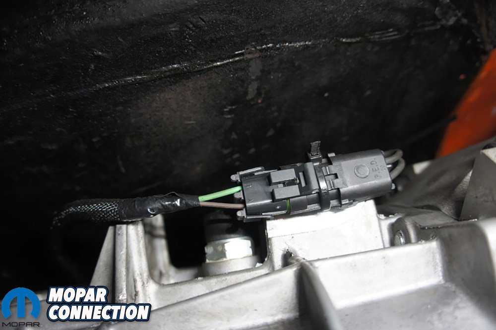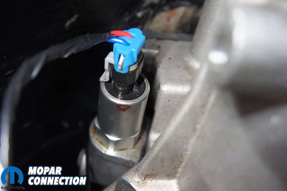 Above Left: We previously spilled some fluid from removing our shifter and see some residual ATF on our reverse lockout solenoid. Above Center: No major leaks that we see on our transmission. Above Right: We make sure all of our connections are zip tied up and out of harms way.