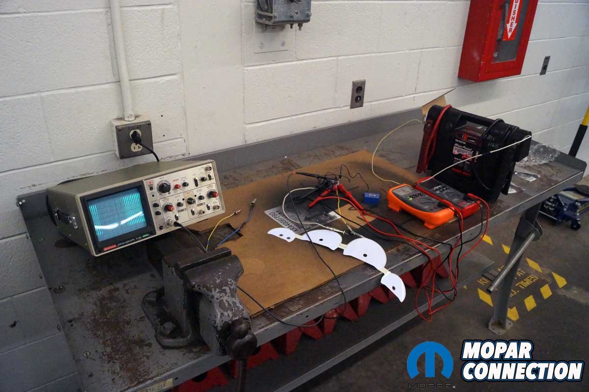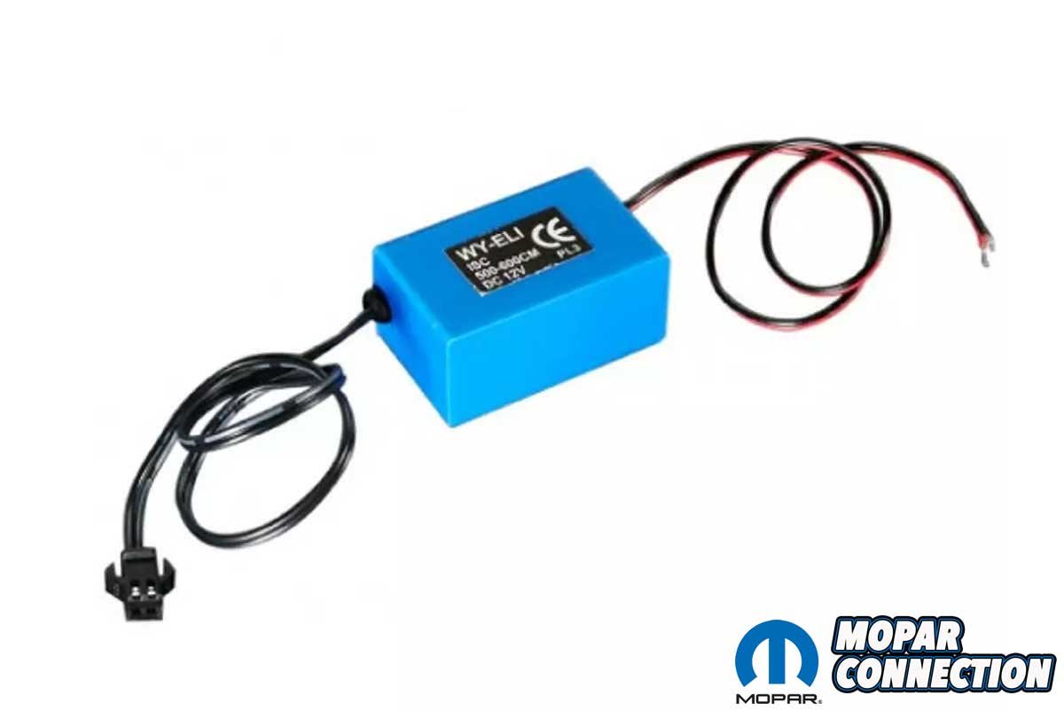 Above Left: The factory cluster inverter often fails, which occurred on the Charger. I purchased an aftermarket inverter that was more robust but also physically larger. The size could be accommodated with some modifications to the backside of the cluster housing. Above Right: Before I tested the EL sheet, I set up a 12-volt jump box to power up the inverter via jumper wires. Additional jumper wires distributed the stepped-up voltage to the EL sheet. Although difficult to see in the photo, the EL sheet illuminated.