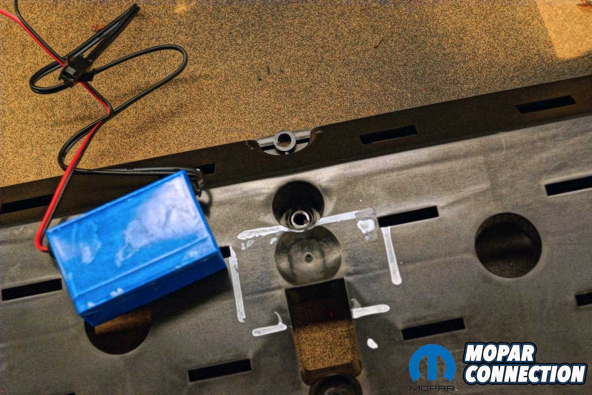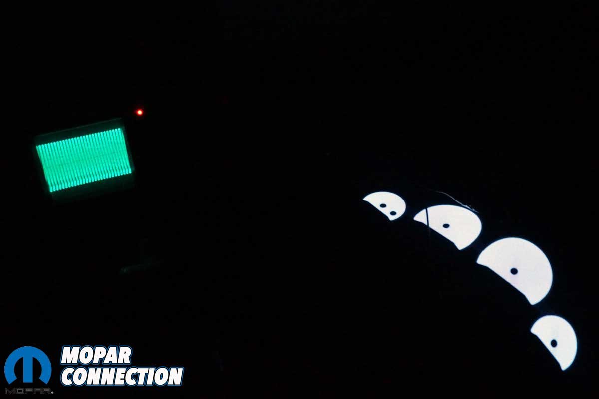 After a successful test, the same disassembly, modify, and reassembly process was applied to the cluster from the Police Pursuit. The inverter was placed into the rectangle cut into the back cover. I elected to glue it into place with a two-part epoxy to ensure it would stay appropriately located. The updated cluster was reinstalled into the Charger, and the EL sheet lit up when I rotated the headlamp switch to the “on” position.