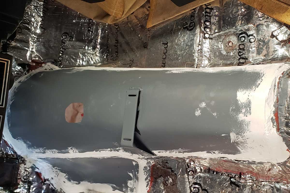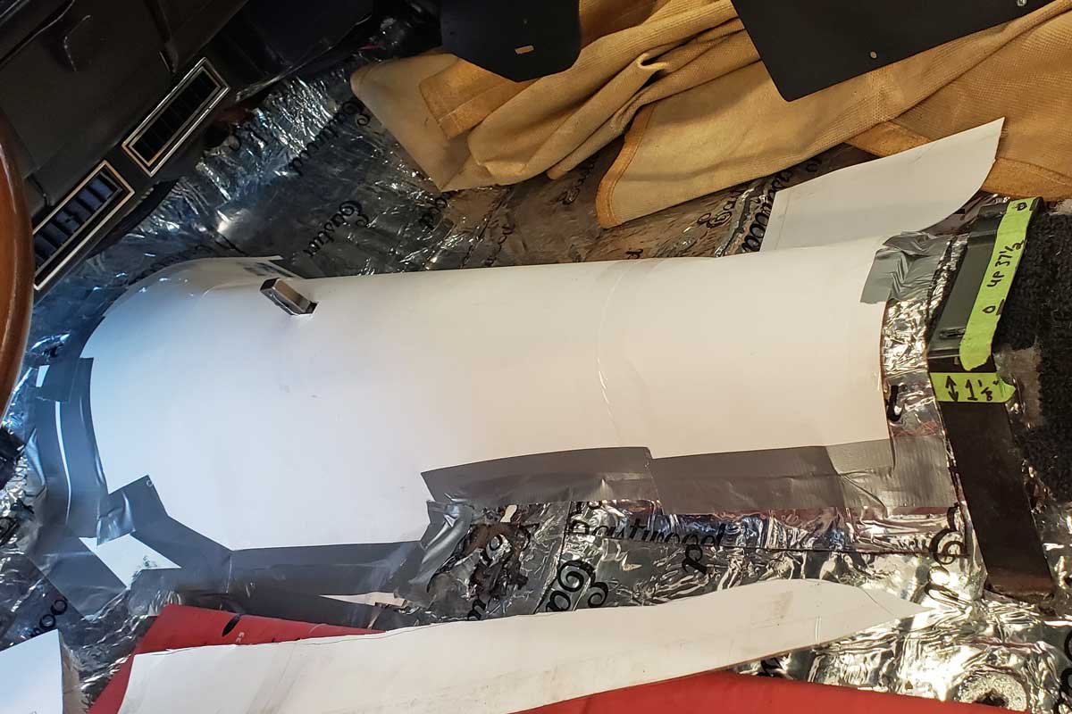 2. The transmission was fitted so that Bruckhart could make a poster board template for the new transmission tunnel.