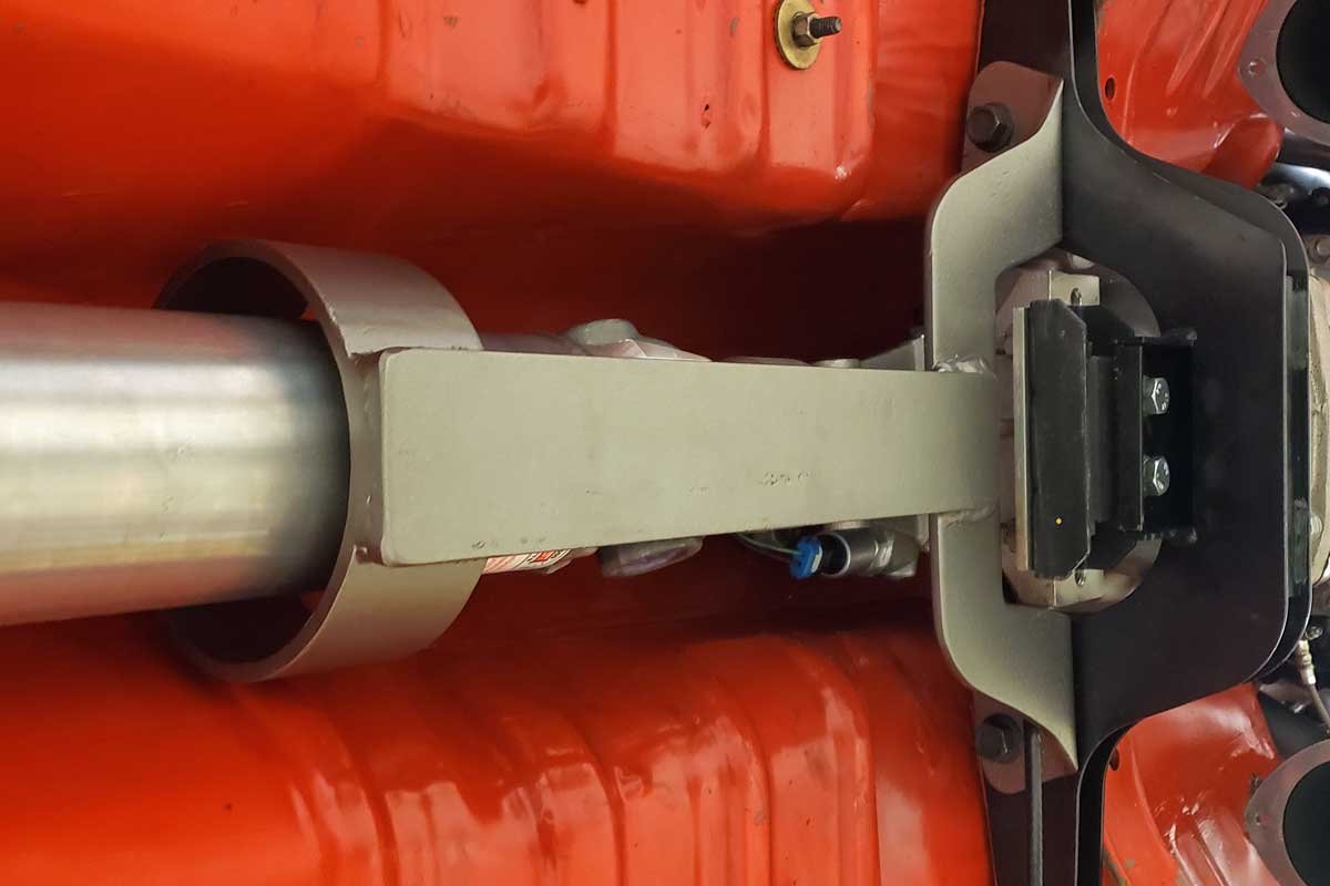 After several test fittings and some trimming, Bruckhart welded in the new sheet metal. He also made end caps for the remaining transmission cross member, which he welded to the floor pan. Once the transmission tunnel was completed and painted, Bruckhart installed the Billet flywheel in preparation for mounting the clutch and transmission.