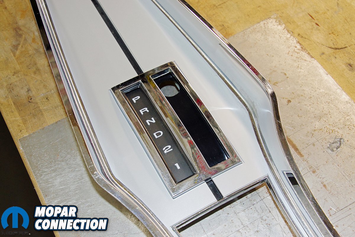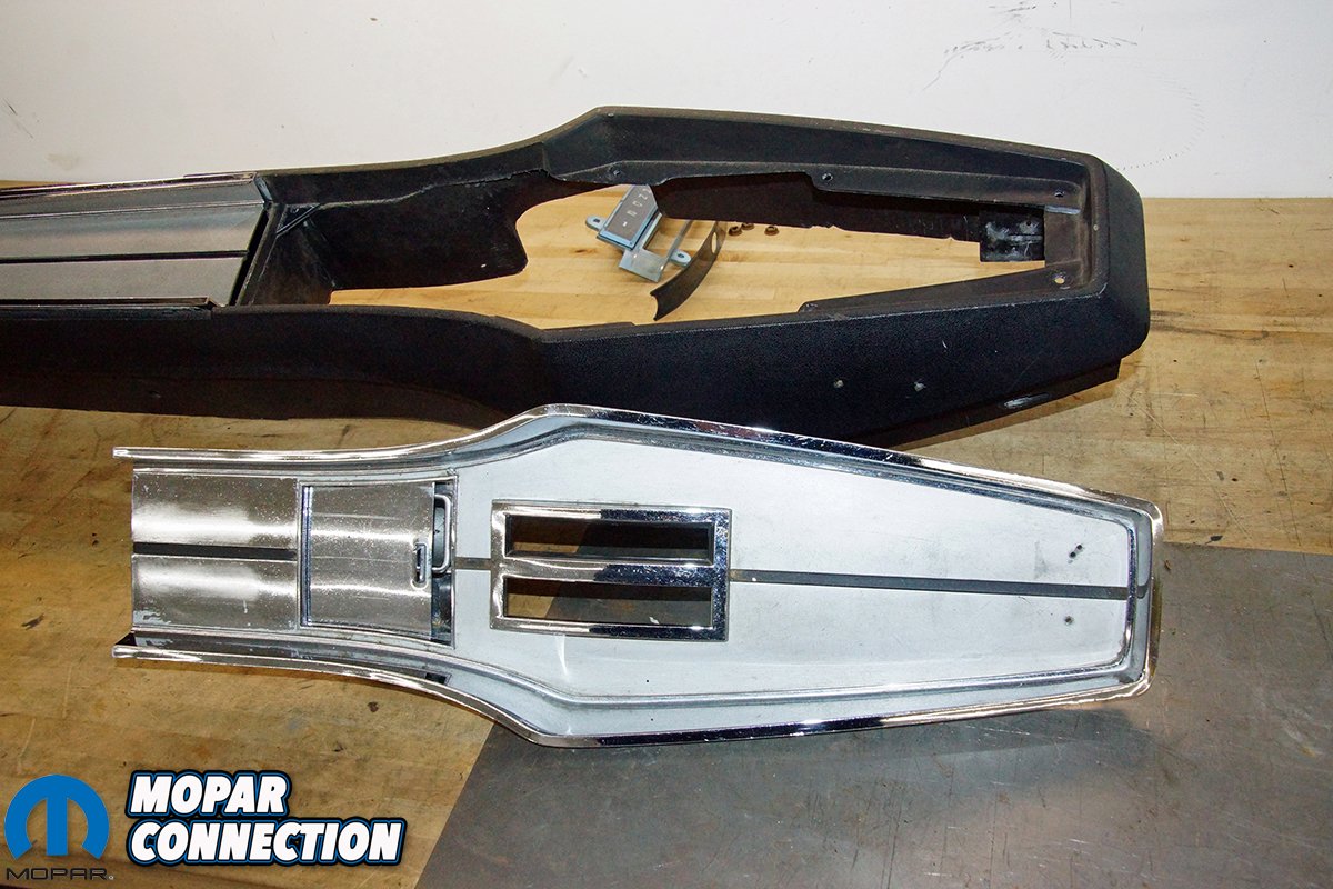 Our 1967 Dart came equipped with a center console unlike the majority that were equipped with the gear selector on the column. Time has not treated our Dart’s console well. It had become the mounting point for several unknown components and now is in less than perfect shape. Being budget minded, our task was to restore the console to a satisfactory appearance with quality reproduction parts from Classic Industries and not break the bank with the use of new-old stock (NOS) parts.