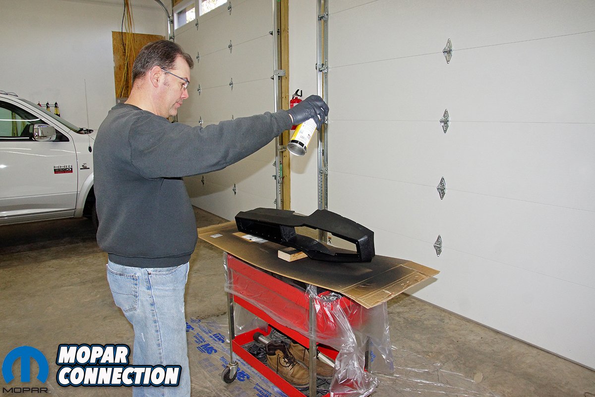 The black paint was sprayed onto the frame with the same technique used with most paints. We laid down several light coats until we had completely covered the frame. The technique to apply the texture to the console took some setup and a different application technique. The texture we desired required the spray nozzle to be between 18- to 24-inches from the surface. Additionally, spraying from above the surface and allowing gravity to pull the texture paint onto the surface provided the best results.