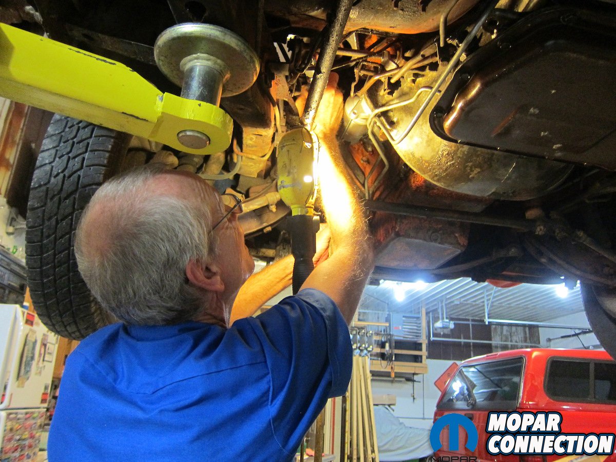 Muffler hangers were next. The one on the passenger’s side looked to be worn but original with a double-loop anti-vibration section. On the driver’s side, however, was a generic single-strap that almost certainly didn’t belong. Regardless, neither mattered much as fresh, correct pieces came as part of the comprehensive kit.