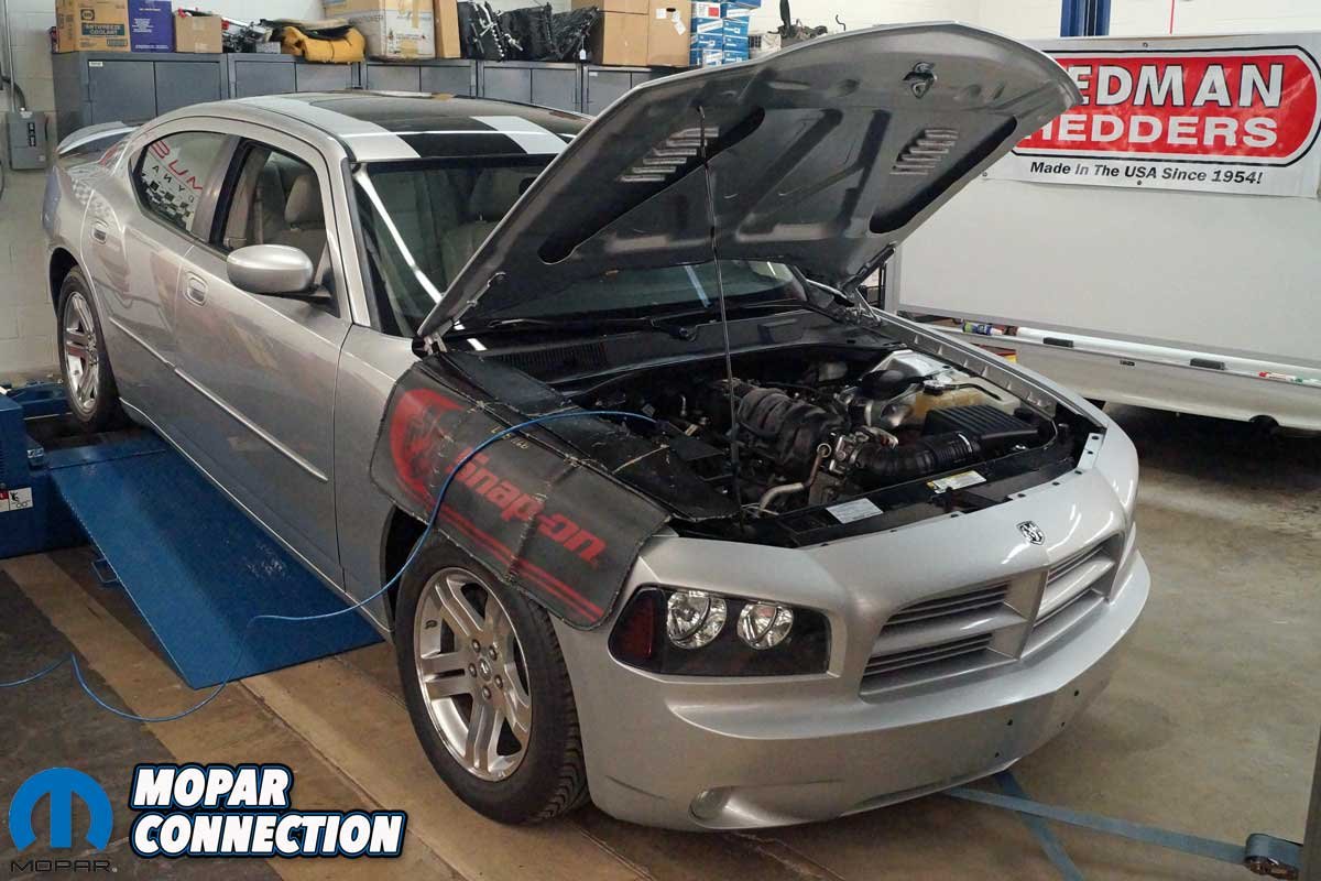 With the Charger back on the ground, the negative cable was reattached, and the engine was started. Once the engine achieved operating temperature, we checked for leaks, noises, and a “check engine” light; none were found, so the Charger was backed onto the dyno for more runs.