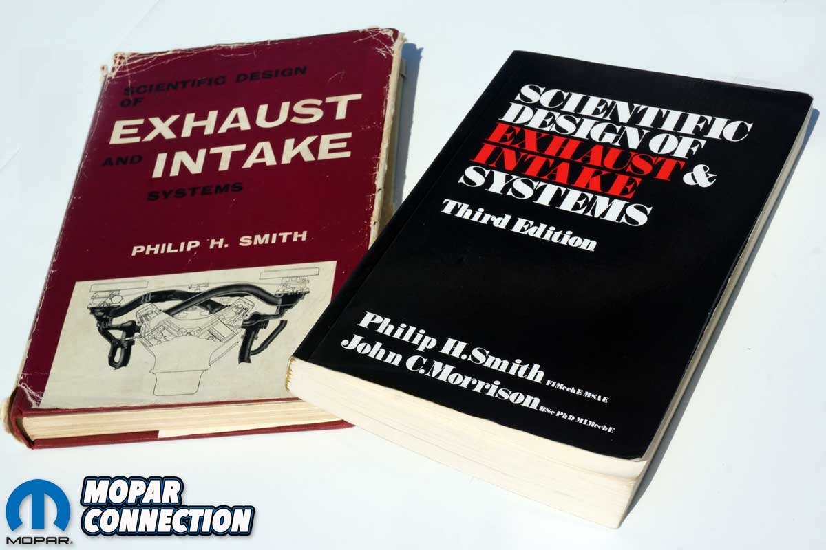 Above Left: With the exhaust wholly installed, the belly pan was installed. The Charger was lowered, and the negative battery cable was reattached. The engine was started, and the exhaust was checked for leaks. With no leaks found, the Charger was backed onto the chassis dyno for additional runs. Above Right: For further information about exhaust characteristics, reference Scientific Design of Exhaust and Intake Systems by Philip H. Smith (with contributions by Dr. John C. Morrison). The first edition (1962) and the second edition (1968) (not photographed) can be found for sale on eBay or Amazon, and the third edition (1971) can still be purchased new from Bentley Publishers.