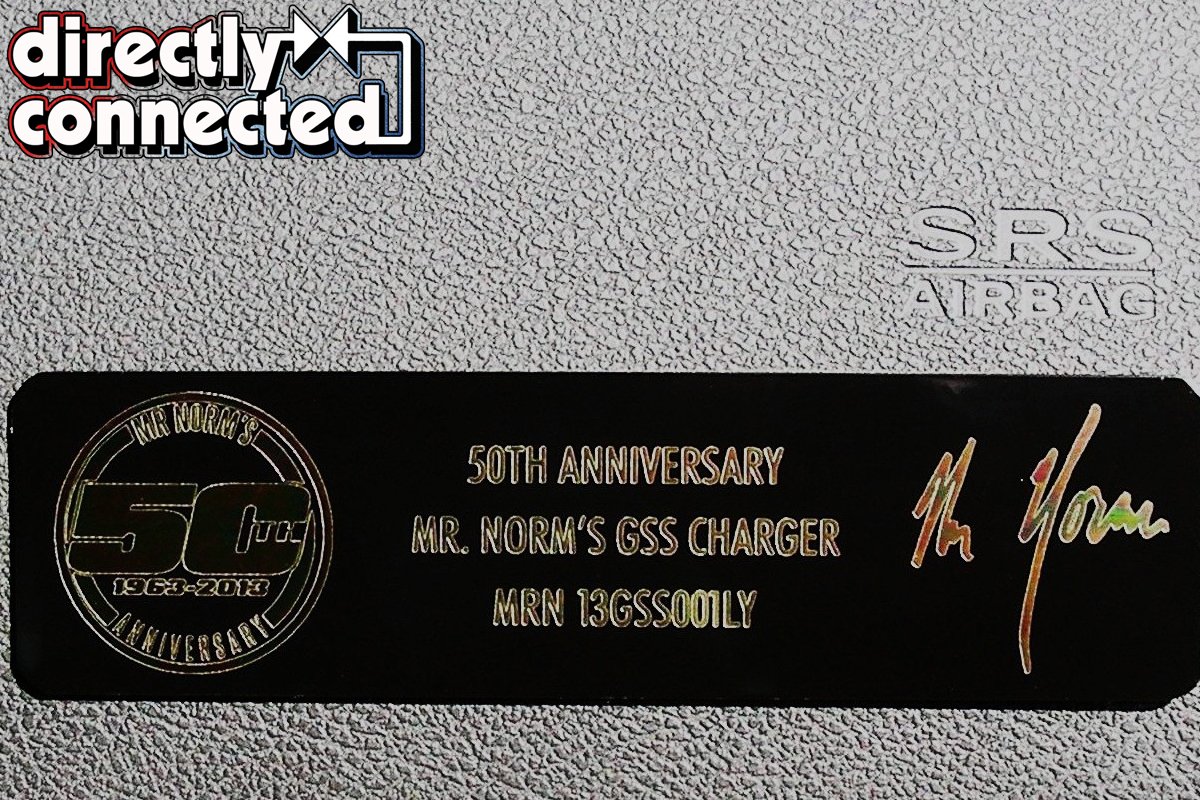 With the advent of the new Charger came numerous requests from enthusiasts for a Mr. Norm’s special edition similar to those already available for the Challenger. In response to the requests, Mr. Norm authorized the creation of a 50th Anniversary GSS Charger as a companion to the 50th Anniversary GSS Challenger. Working with Bosak Motors in Merrillville, Indiana, a Mr. Norm’s dealer, Serial Number 1 of the 50th Anniversary GSS Chargers, was brought to life. It is a very special version of this limited edition series, and is the feature vehicle in this story.