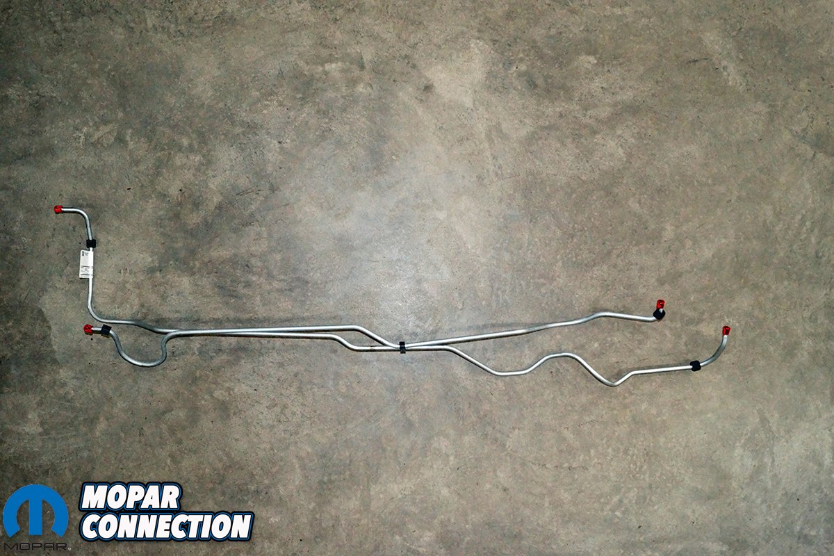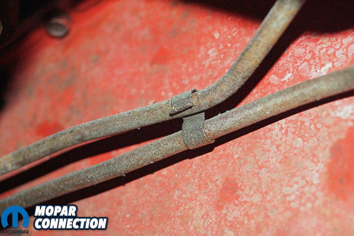 The spring came in a violet color, and had the correct 33 coils similar to the original, which would reduce the pressure required to operate the throttle pedal. To address the cooler lines, we selected a transmission cooler line set for the 1967-1972 A-body small block with a 904 transmission (part no. QRB97TS). These cooler lines were the original-type steel material and had the properly-placed factory bends.