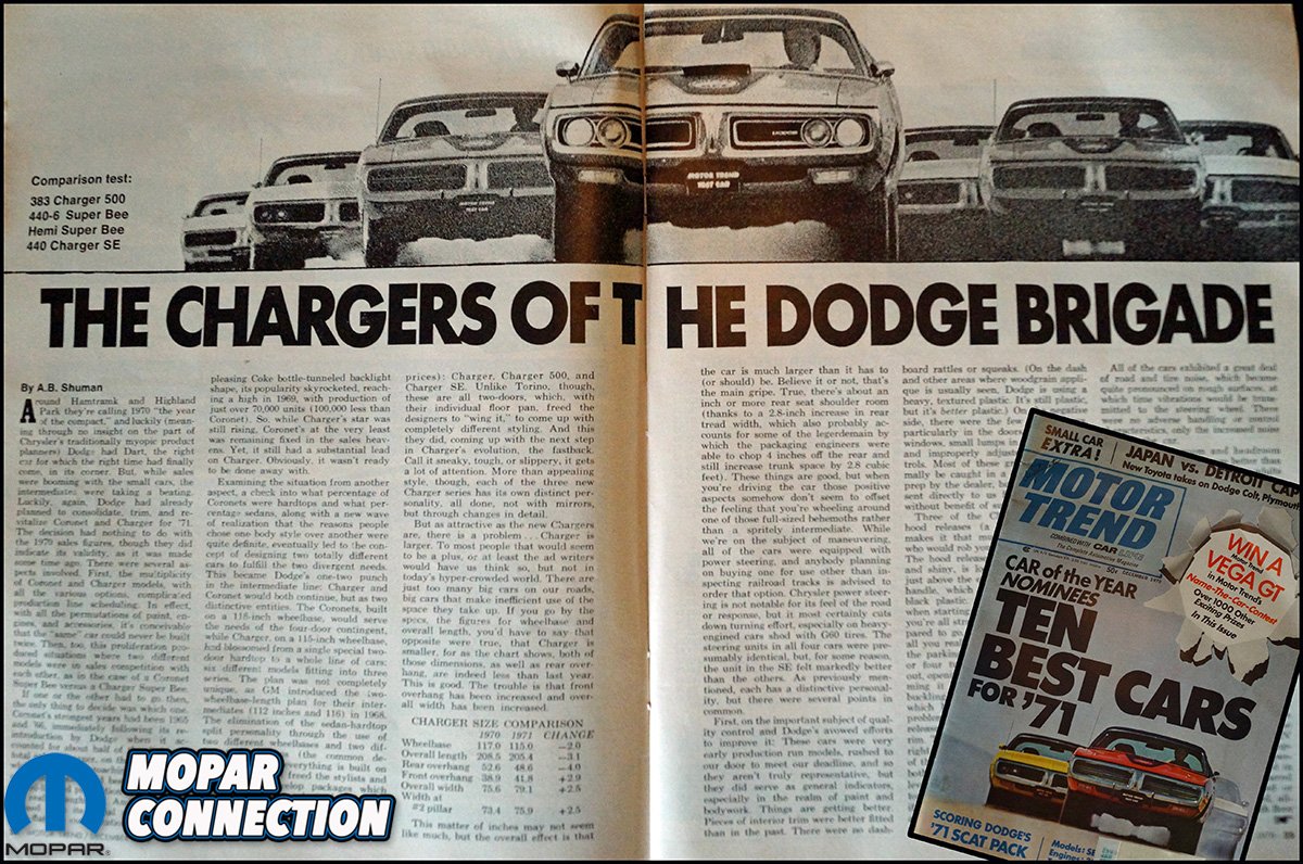 In May of 1971, Rich Boswell, a Navy sailor with an obsession for anything Mopar, was on a five-day stay at a Veterans Affairs (VA) Hospital. While awaiting a test, Rich perused a copy of the past December issue of Motor Trend magazine. The magazine featured the new 1971 Charger product offerings. The Hemi-equipped Charger piqued Rich’s interest, and at that moment decided that a Charger would be his next Mopar.
