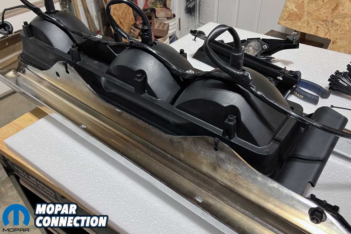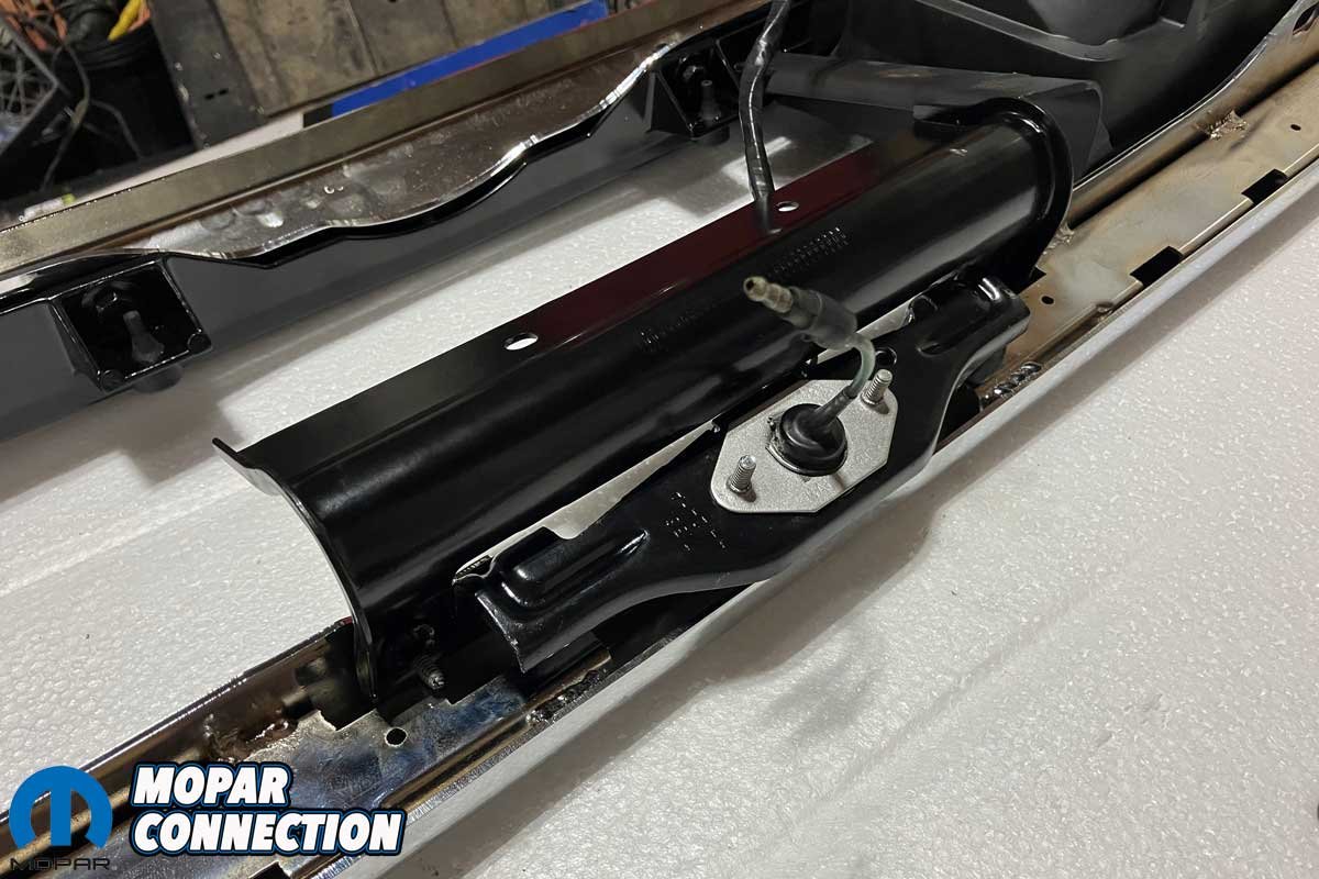 With three donor bumpers, two from 1973 Chargers and the previously mentioned 1971 Super Bee, we pieced together a complete unit. We specifically chose the ’71 brackets for their shorter length, which would allow the bumper to sit closer to the body.