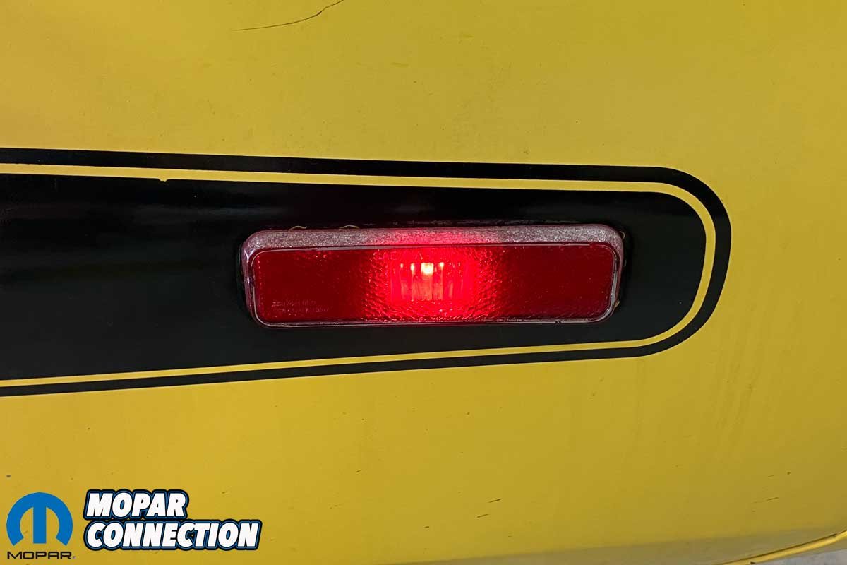 Above Left: The bumper no longer extends inches from the body. With the ’71 bumper brackets, the bumper fits into the body’s contours much nicer. However, there is no longer any five-mile-per-hour bumper protection. Above Center: The AMD bumper and Classic Industries lenses set off the rear of the Charger. Above Right: The Holley RetroBright bulbs are incredibly bright. The clean, undamaged lenses allow for perfect illumination.