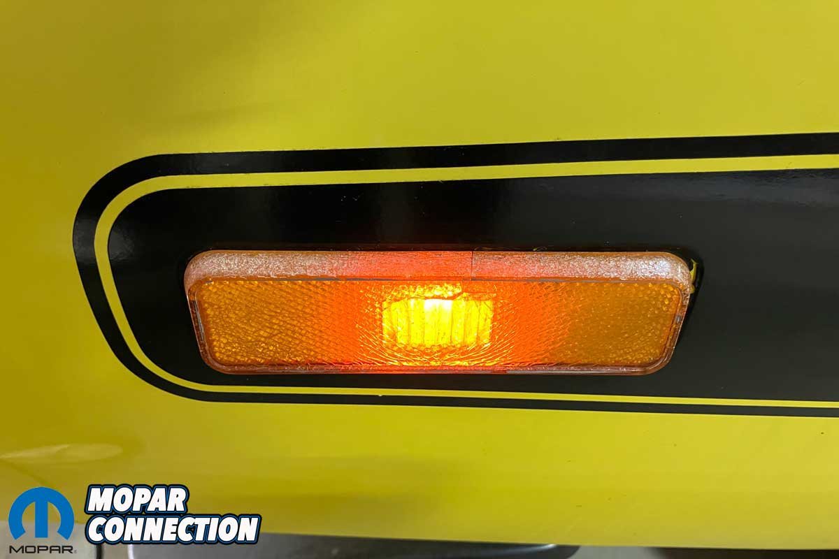The side markers came out after unthreading two nuts on the backside of each marker. While the new lenses featured a silver trim, which was not factory-correct for Rallye models, a dab of acetone on a rag removed the edging. Holley RetroBright 194 bulbs completed the update.