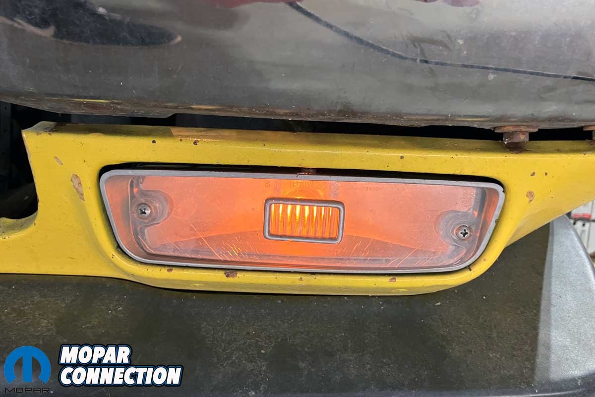 Above: At the front fenders, the amber marker lights were in bad shape. Again, we swapped in a pair of Classic Industries markers and LED bulbs.