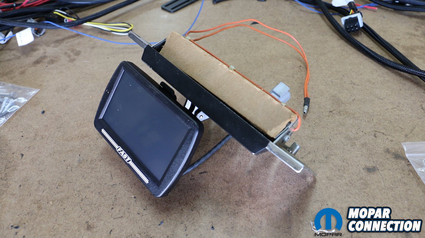 Above left: FAST emphasizes that the system’s main power and ground wires be directly connected to the battery, as the system operates on electrical signals that typically operate on a 0-5-volt scale. If not properly grounded, things can go real bad really fast. Equally, this also allows the battery to act like a giant voltage spike suppressor. What you’re seeing is Morgan feeding wires from behind the backseat into the trunk to our rear-mounted battery. Above right: Because Brazen no longer uses its air or heater, our control panel was there mainly for looks. Now its the base for our invertedly-mounted hand-held dash tuner.